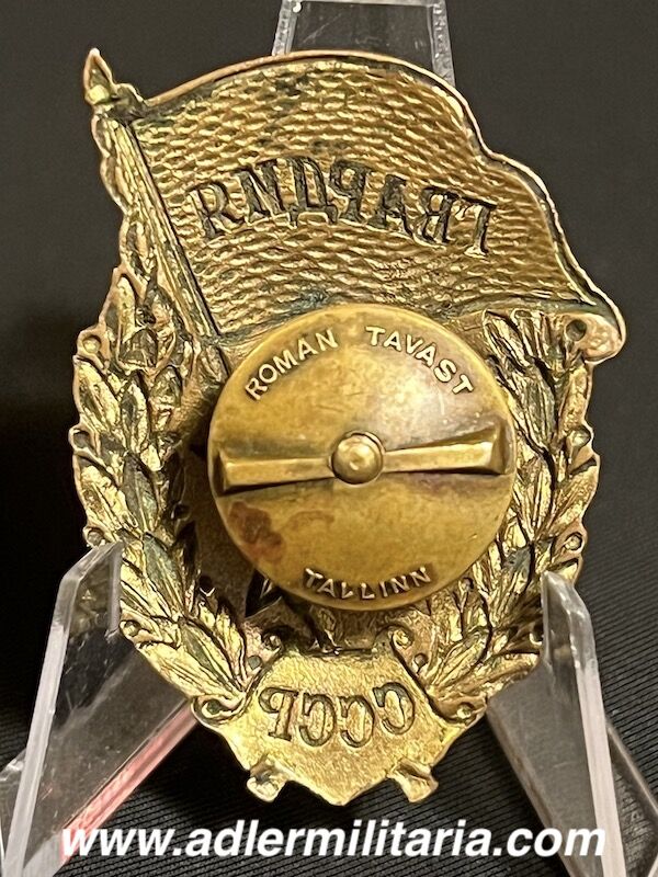 The former factory of Roman Tavast, a pupil of the well known Russian jeweler – Faberge. Therefore, all insignia made for RKKA in Estonia are famous for their quality. End of war or early postwar made badge. The screwback is marked: Roman Tavast – Tallinn .