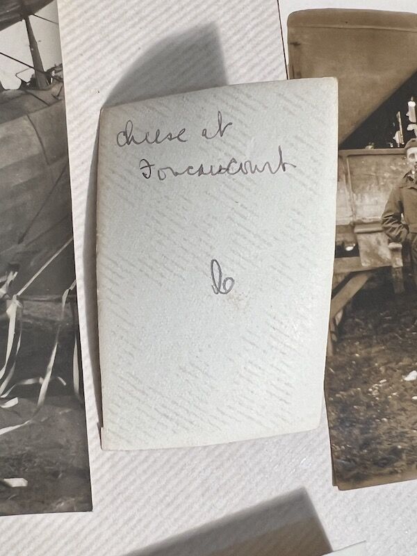 Many of the photos are noted on the rear and have an array of different content, I was unable to find much information even on this unit. Many photos show the daily life of the Section and include two interesting photos of personalities – Captain Adams, and Lt Esley. Both seem to be leading the Photo Section. Interestingly there are photos of many different aircraft including,