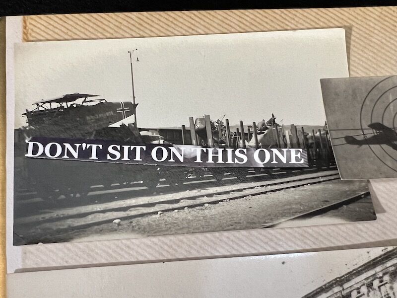Scrapped German Planes, D211 – Paris on Display, Major Andersons Crash at at Quiches. Flying Fish Field. Wreckage of a German Armoured Plane November 1918. Dead German Soldier with Helmet next to him. Dead german Soldier with Gas Mask on his Chest Noted – Dead Boche in the Argonne) . Gas Attack . Camouflaged Observation Ballon near Verdun. Boche Plane Brought Down. Americans Collecting German Spiked Helmets. Dug Outs in the Argonne. Chateau de Chehery.