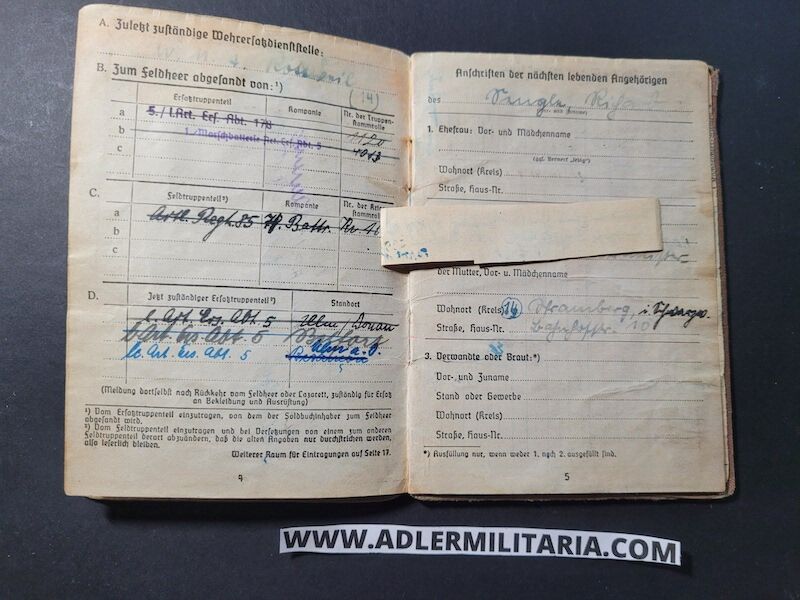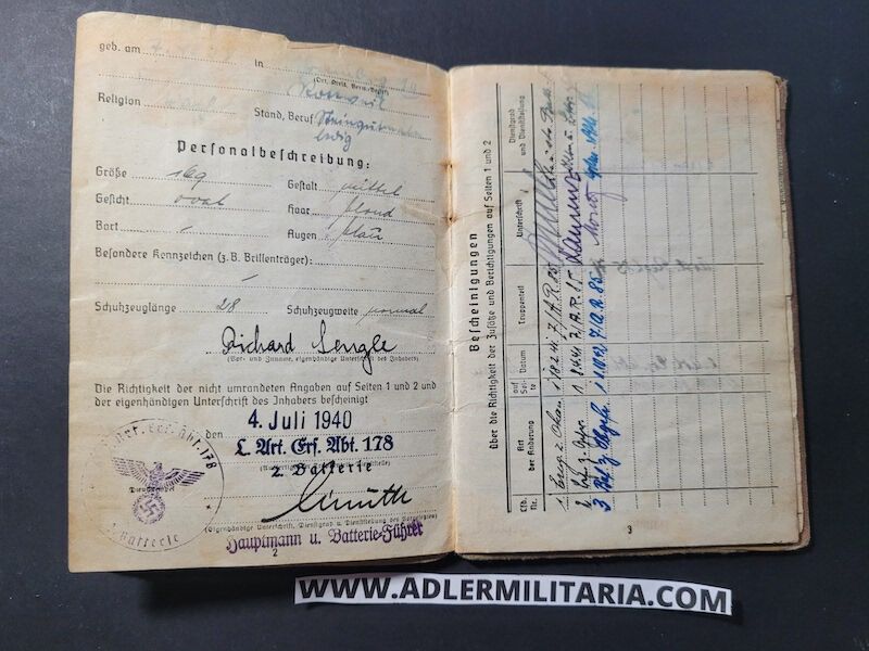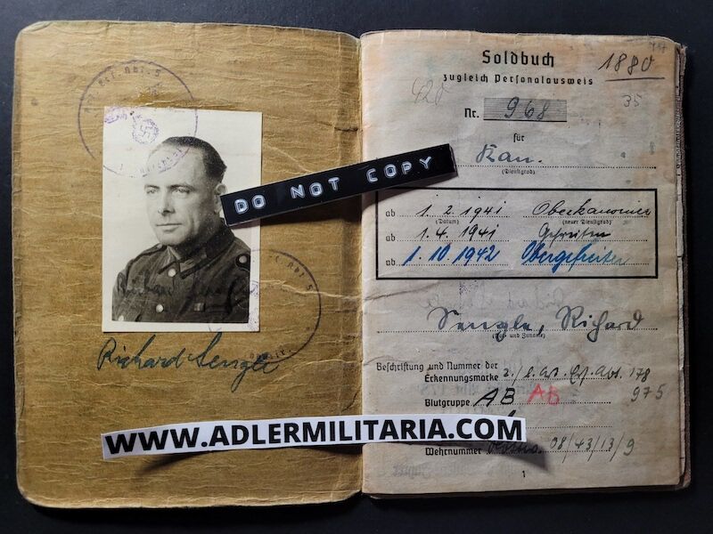 Heer Soldbuch – Obergefreiter Sengle – Artillerie Regiment 85 (101 Jäger Div) Kuban Shield