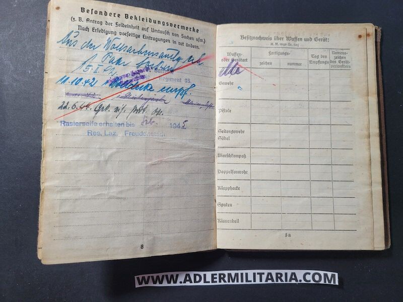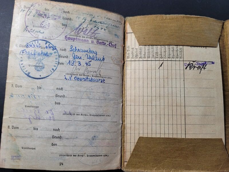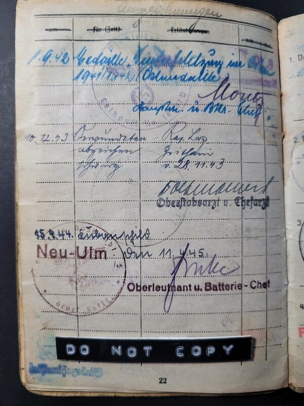 He was wounded in December of 1943, although his wounds pages are not inside the Soldbuch (price reflects this) its still a highly desirable Eastern Front Campaign, and the entries for the Kuban Medal are not seen so often.