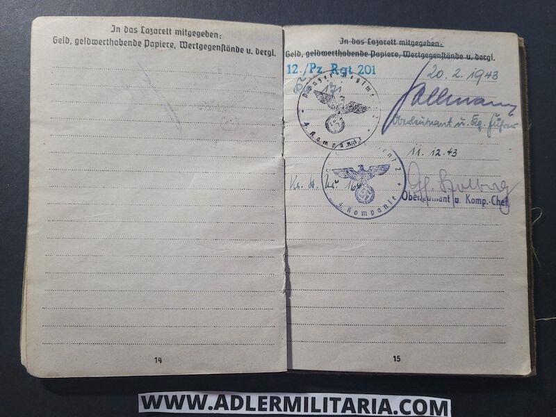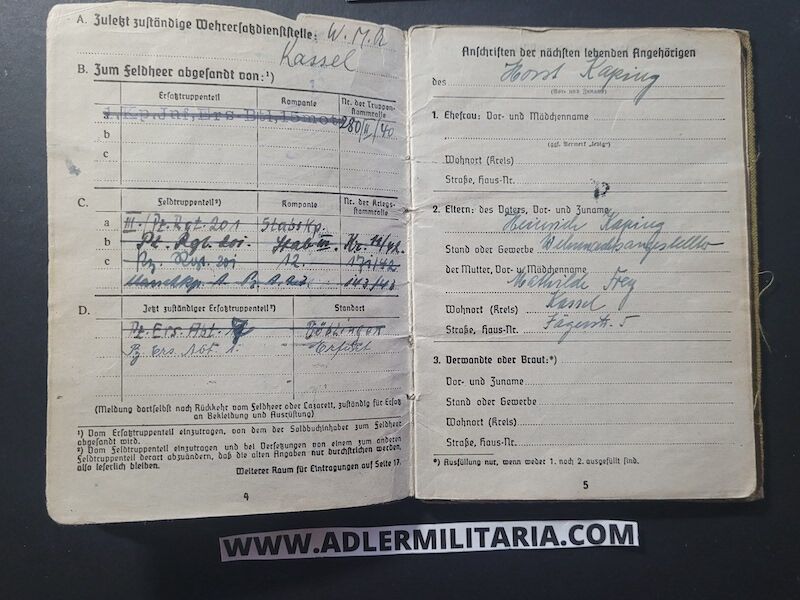 Heer Soldbuch – Uffz Kaping – Panzer Regiment 201 (Paris) & Panzer Regiment 2 – KIA in 1945 – Sad Story (on Hold)