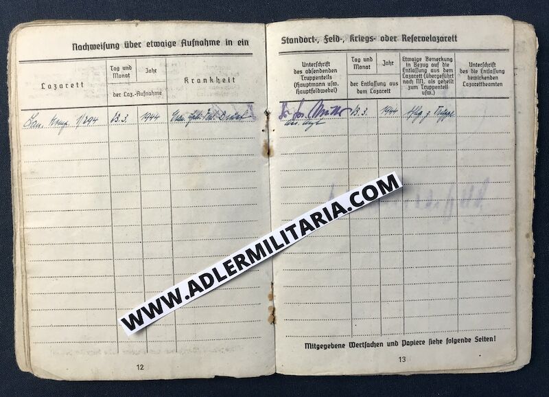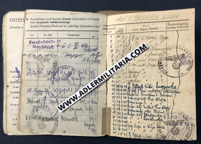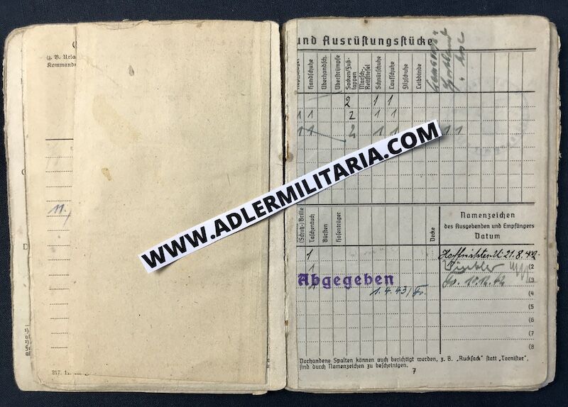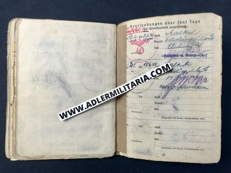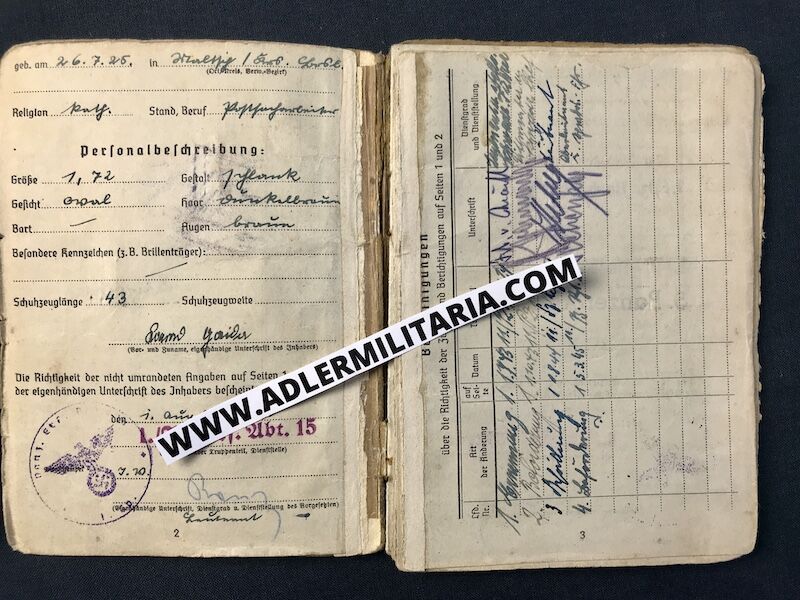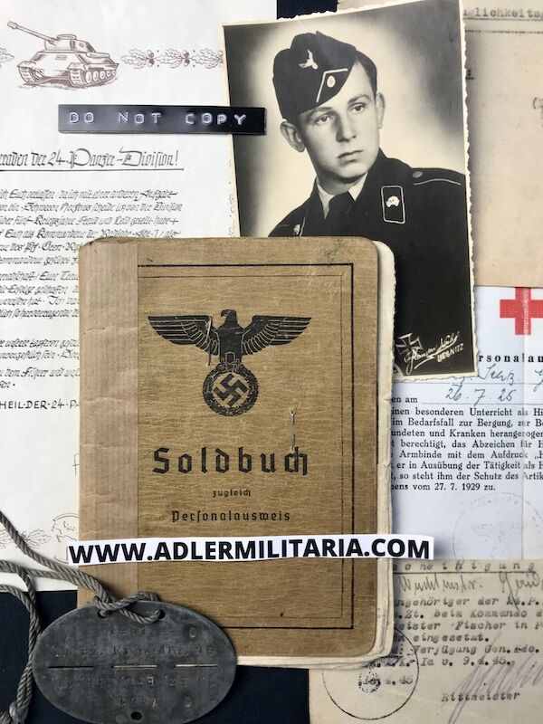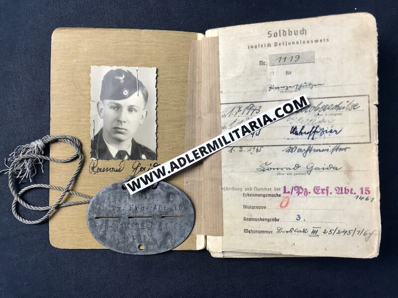 The Soldbuch is his first issue Soldbuch and would have been on his person from the date of issue. His matching Tag was also first issue, and still retains the neck cord.