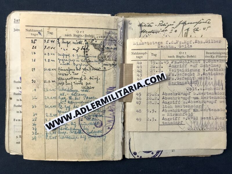 Summary, this Soldbuch grouping is astounding, and as far as I have collected IDs, I have yet to see 49 Panzer days entered in a Soldbuch! His awards, and his brave actions are well recorded and this grouping will be hard to top if your interested in owning a Panzer Commander!