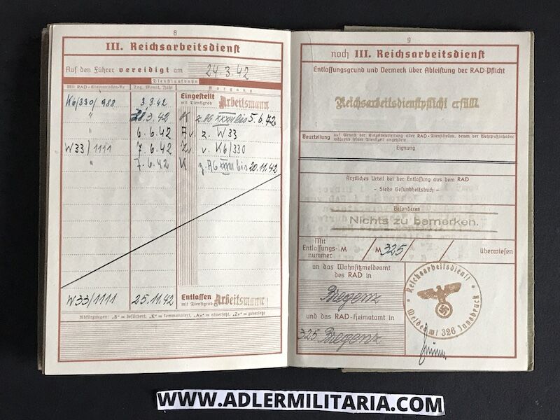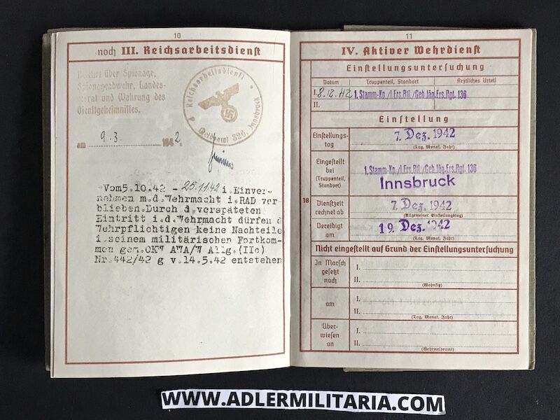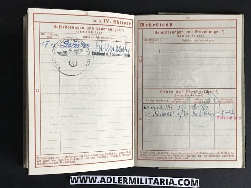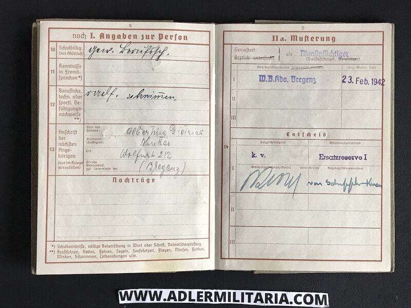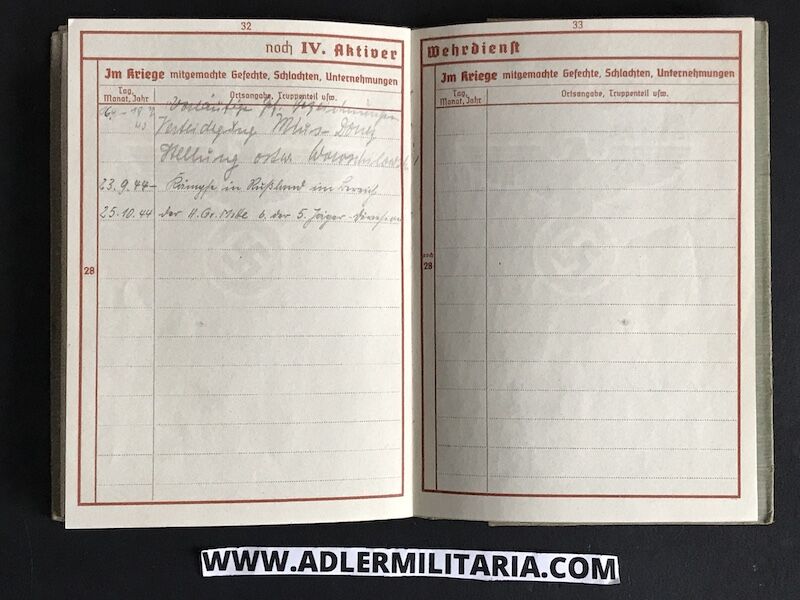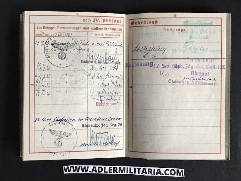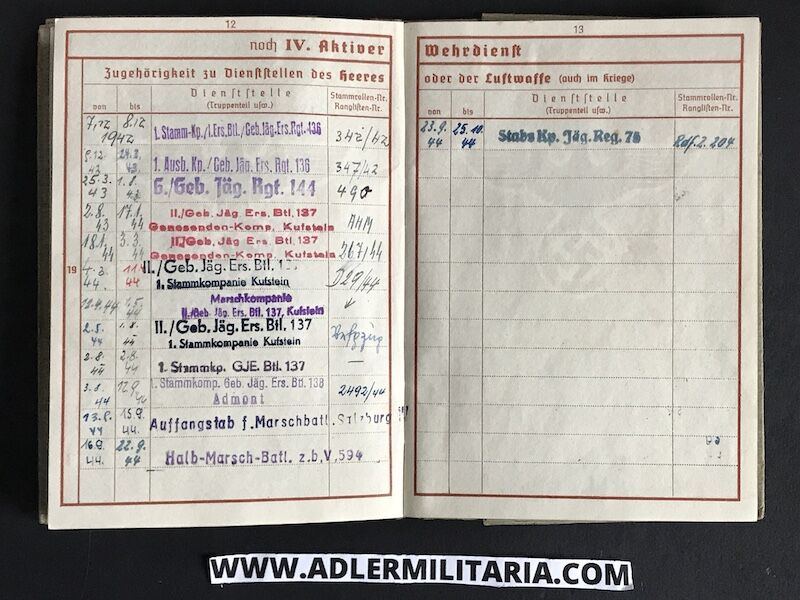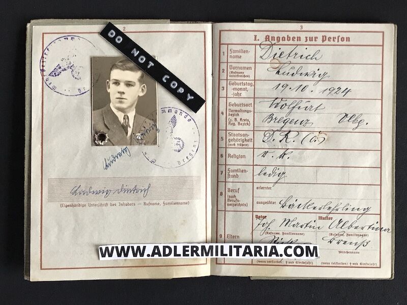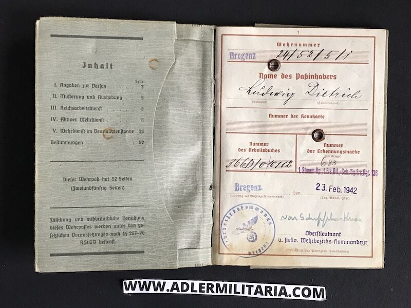 Heer Wehrpass – Gefreiter Dietrich – Jäger Regiment 75 ( 5 Jäger Division) KIA 1944 (Sold)