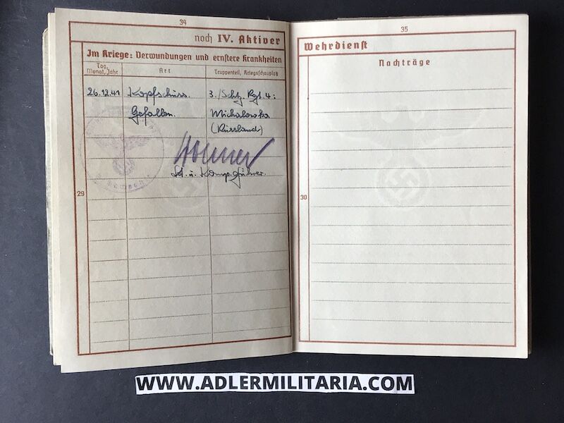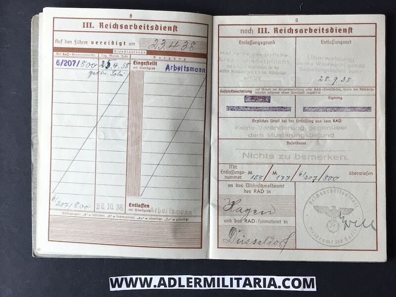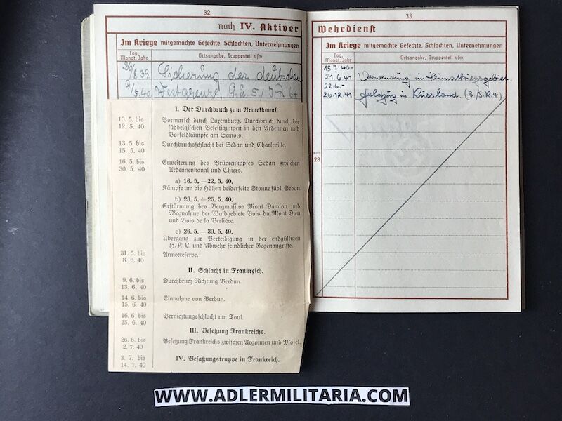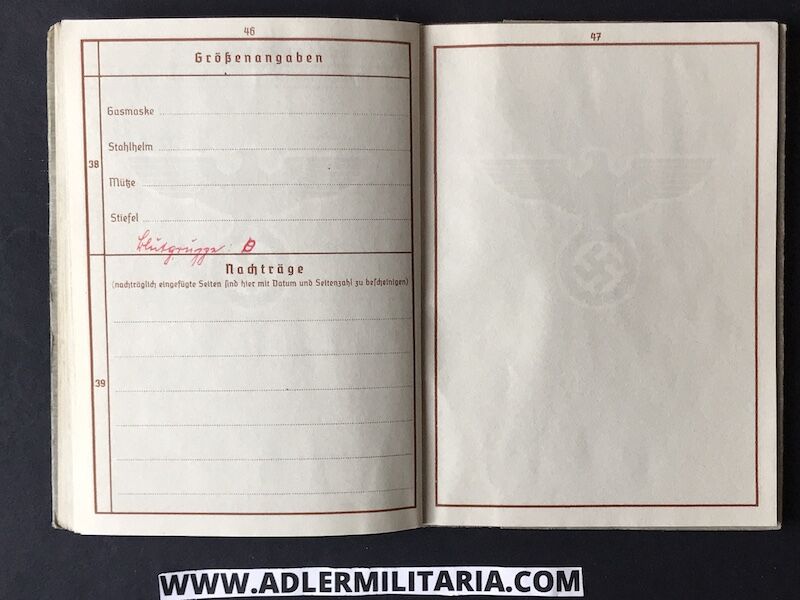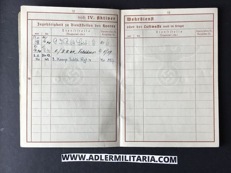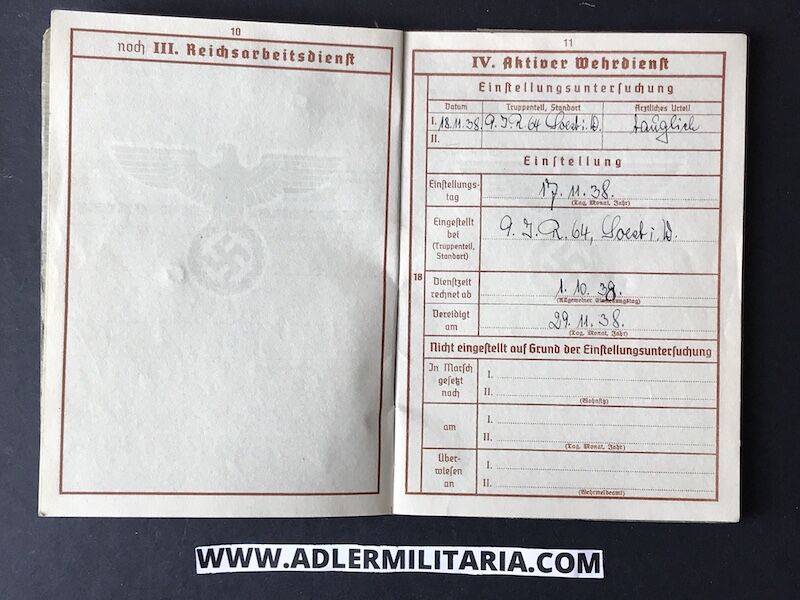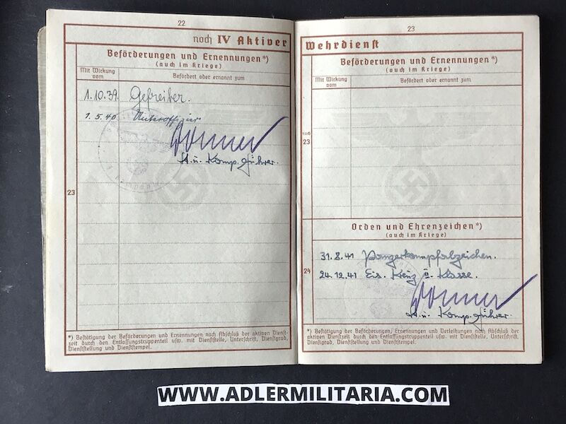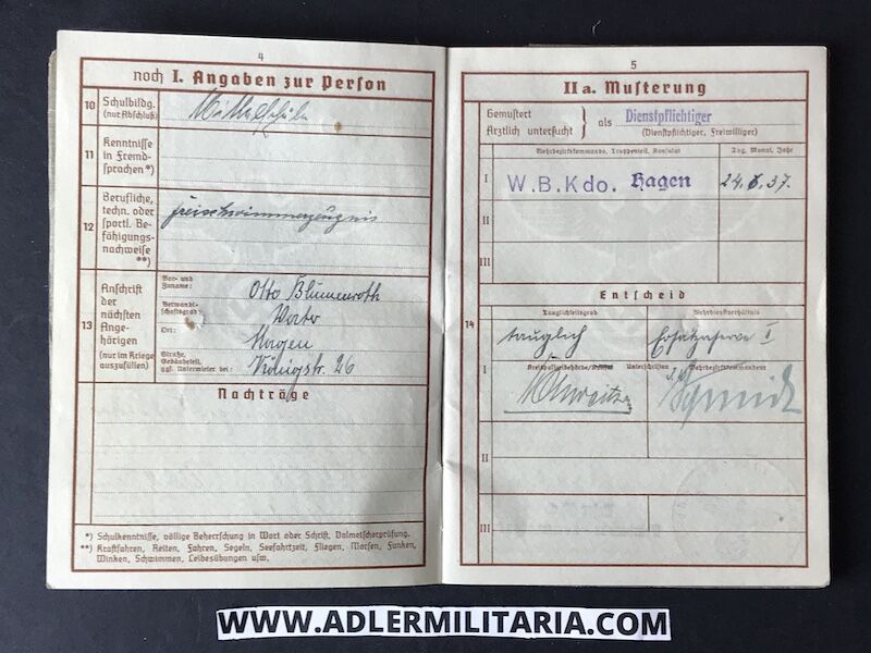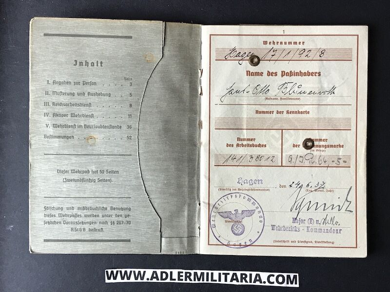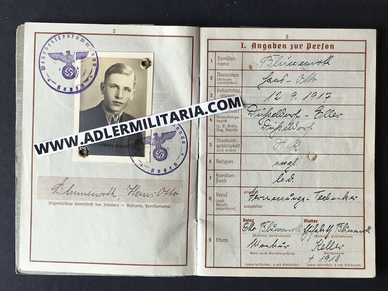 Wehrpass to hans Blumenroth born in Düsseldorf in 1917.