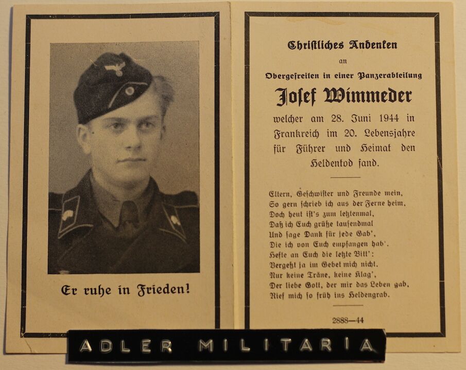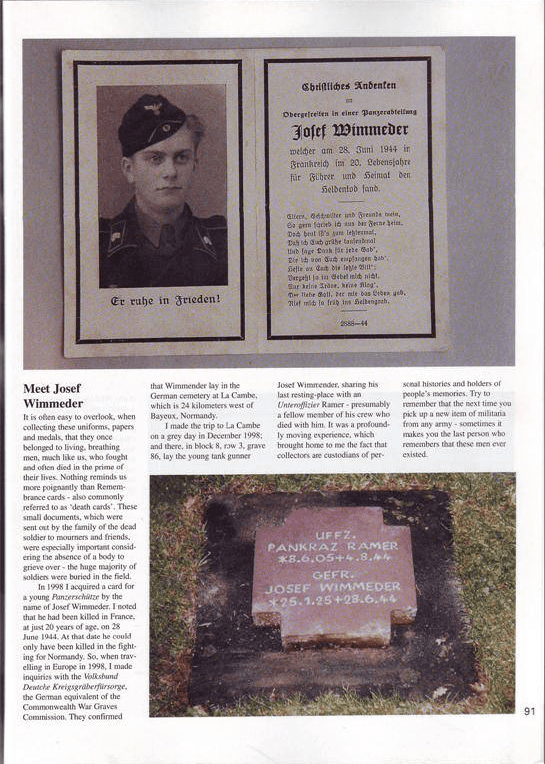 Josef Wimmeder – Panzer Man – KIA Normandy 1944! La Cambe Mentioned in a book!