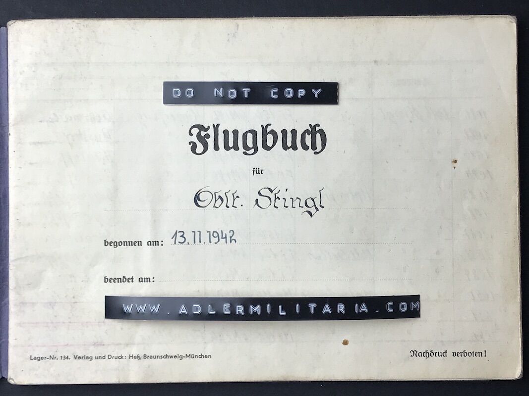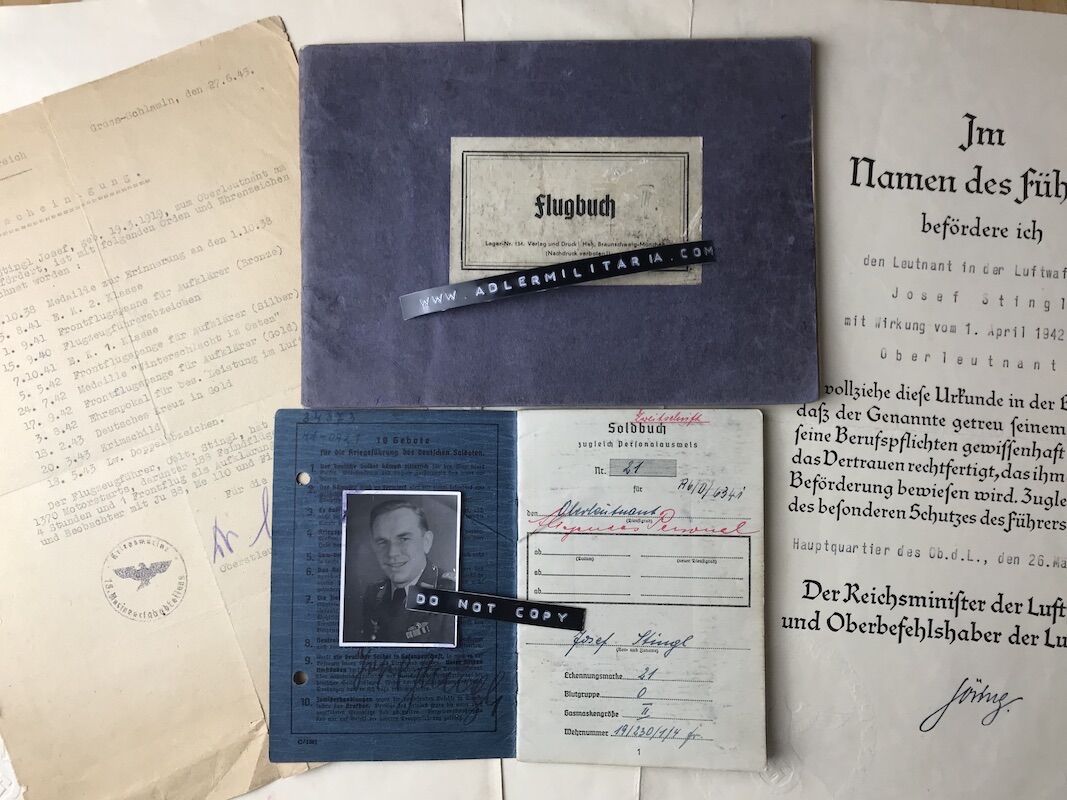 Luftwaffe Soldbuch & Flugbuch – Oberleutnant Stingl – DKiG/Pokal – 200 Enemy Flights – Amazing Grouping!