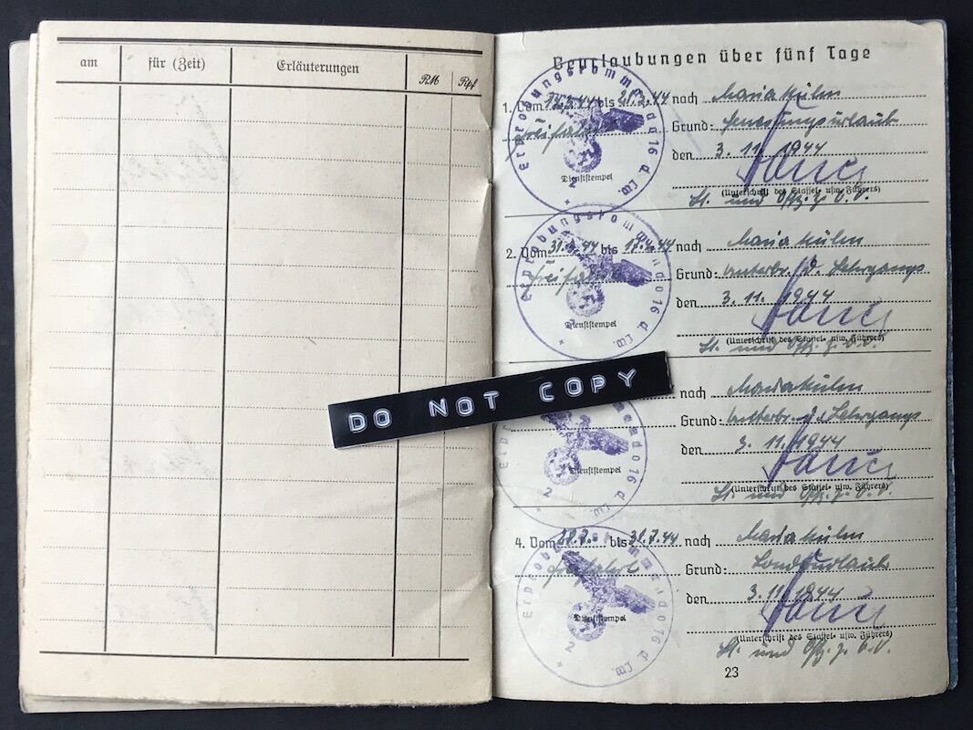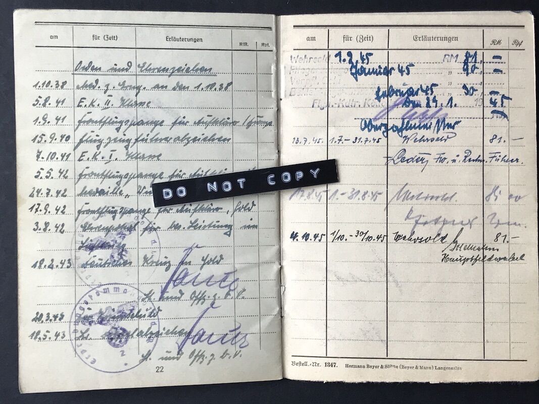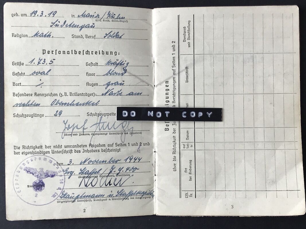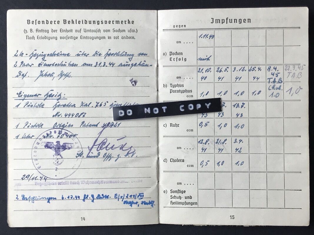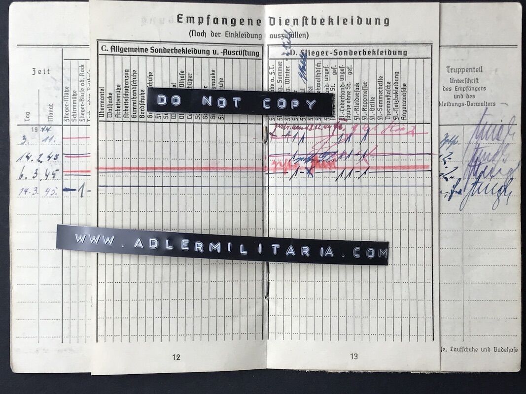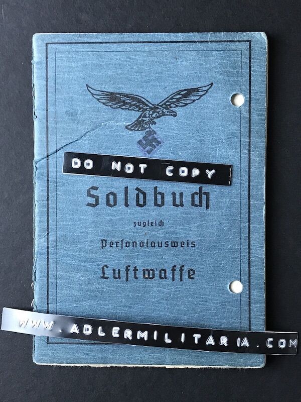Soldbuch Issued: 3 November 1944 with the Jagdgeschwader 400, a unit equipped with the ME163 Rocket Fighter!