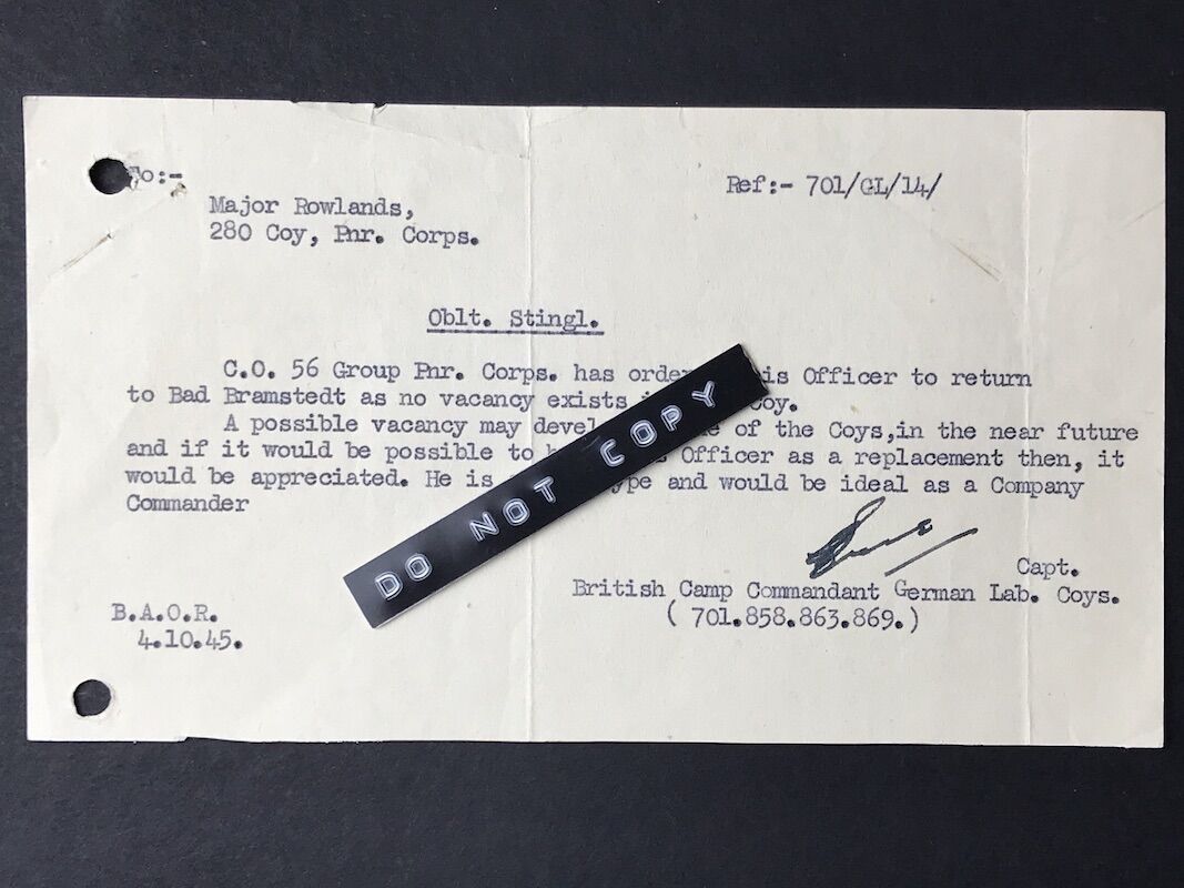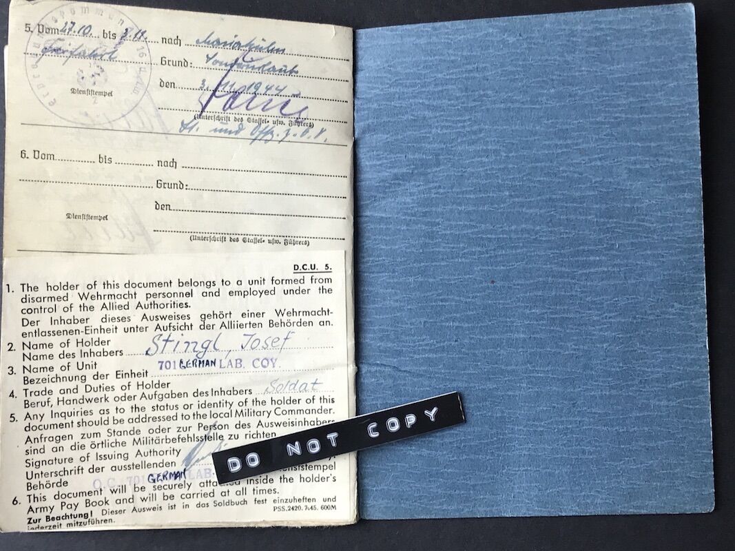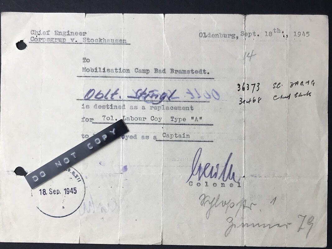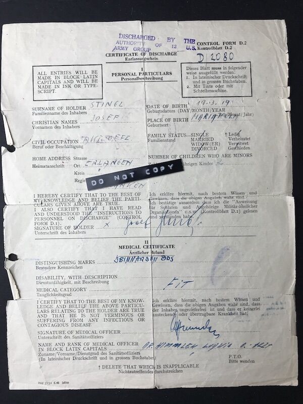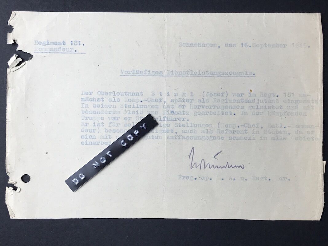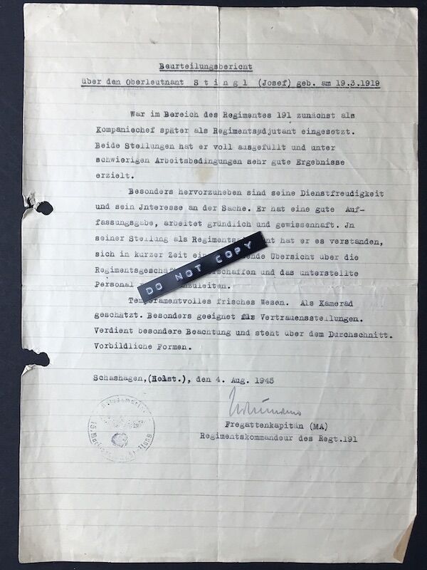Stingl would serve with the Allies as a Company Commander with Regiment 191, he was employed under the allied forces as a rank of Captain. After his release he moved to Berlin to build his new life with hsi wife.