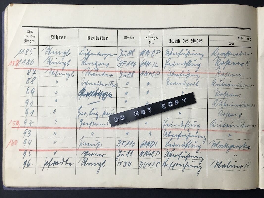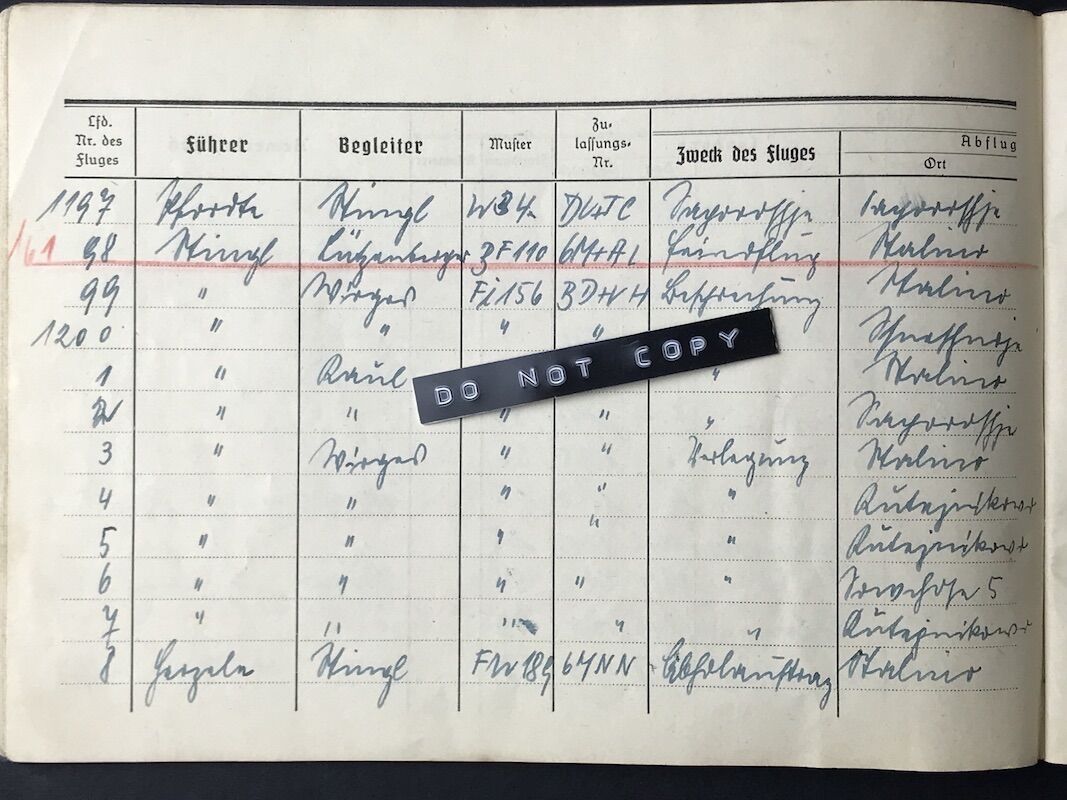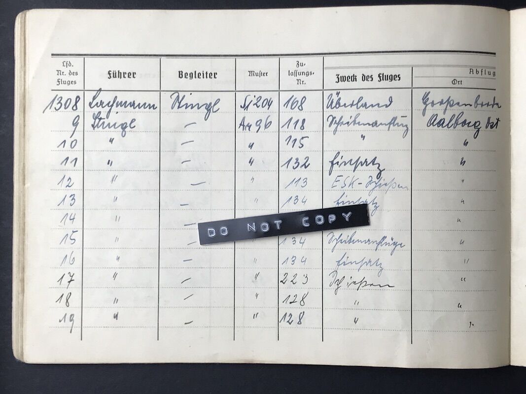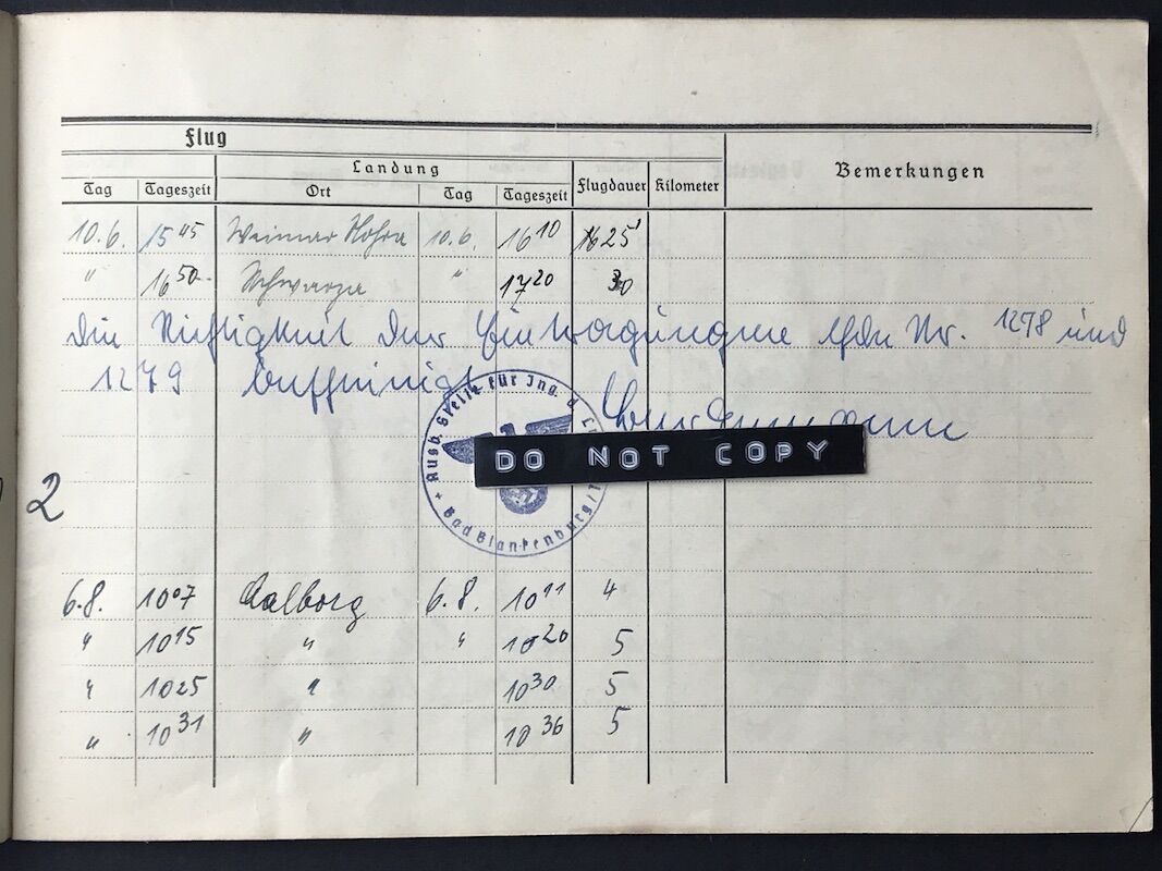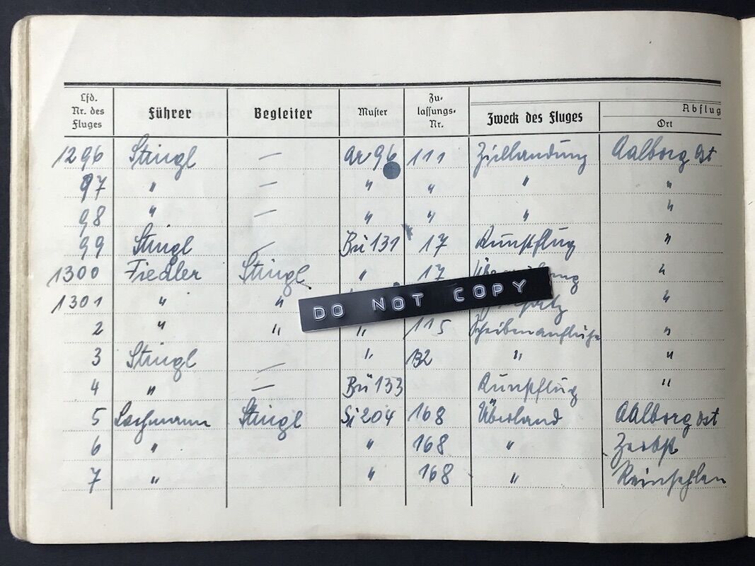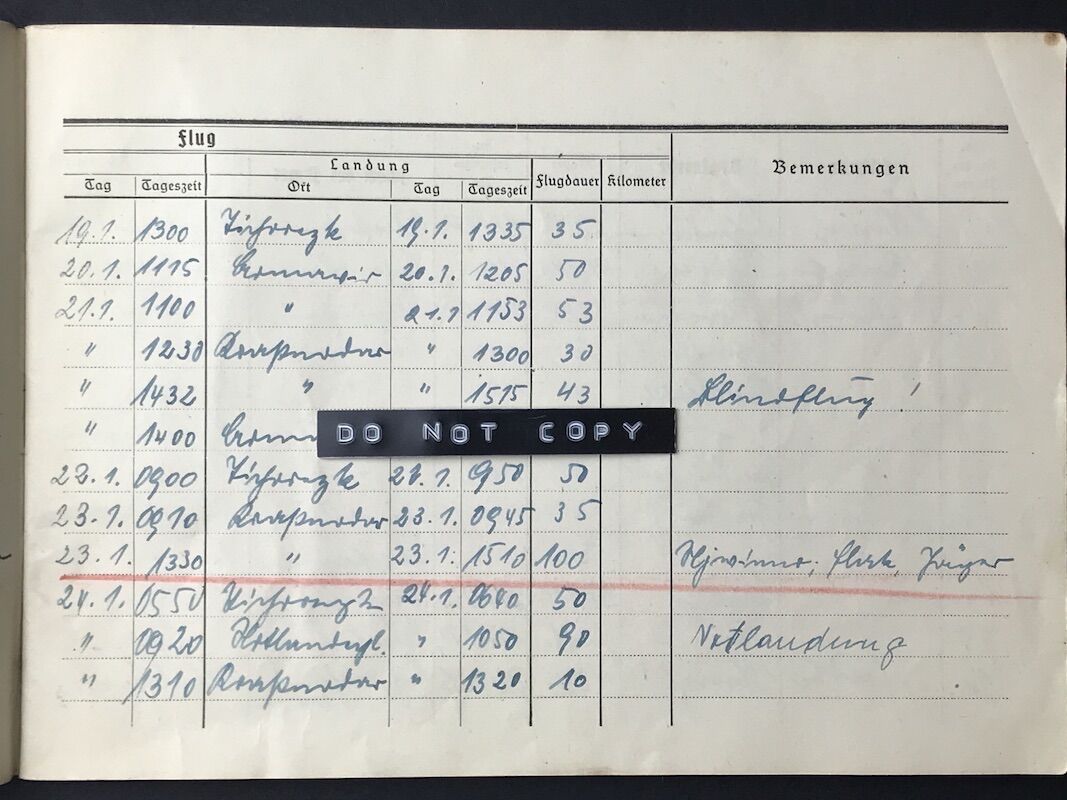 Interestingly, the Flugbuch displays an array of different flights, many of which were in enemy territory. It would also seem that not only was he in combat with the enemy in the air and ground targets but he was also shot down a few times. An interesting discussion about Stingls plane as well as pictures can be found here: