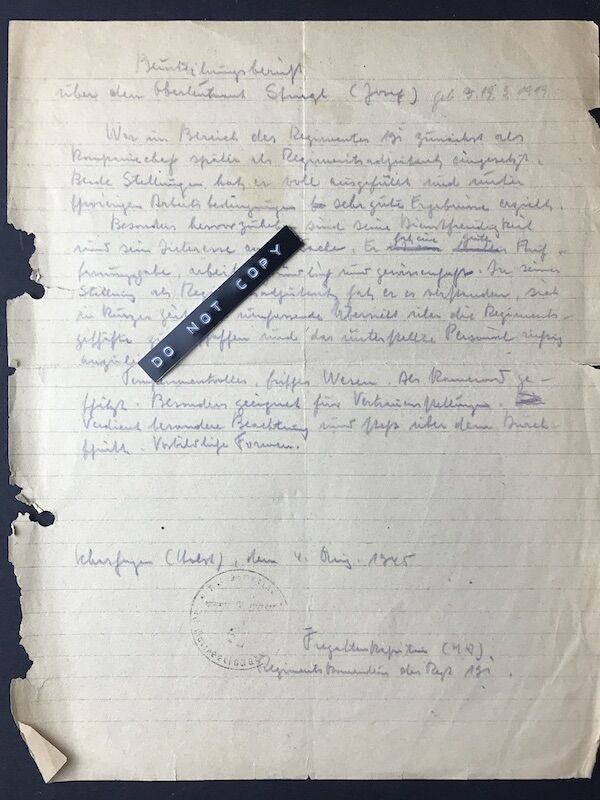 By late 1944 Stingl was with JG400, an online article states he was also testing rocket fighters. So it must have been here with the Me163! Likely this was under the eyes of Erprobungs Kommando 16, as there are a few stamps in the Soldbuch around the same time. In an online official German publication it states that he married, and after a semester at the Flight Engineer school in Berlin Werder, he was undergoing training on the Me163. This was cut short and he was sent to the eastern front.
