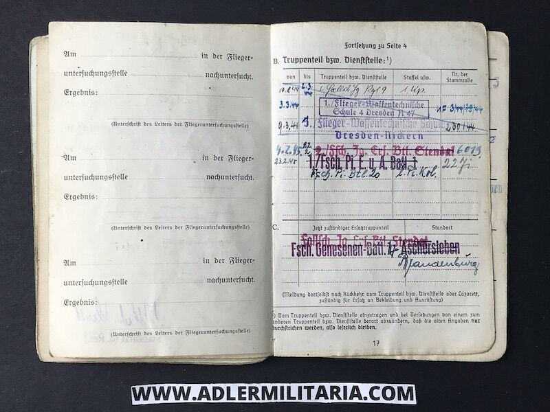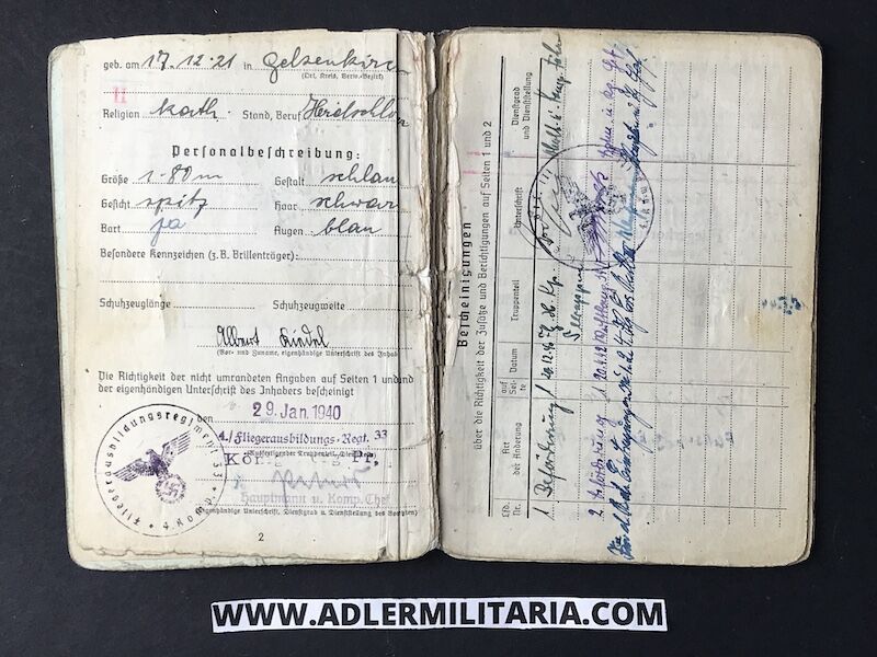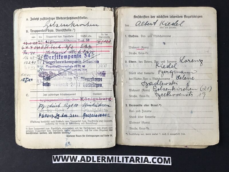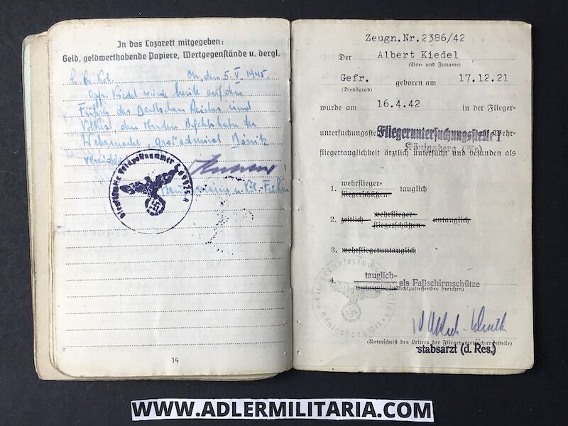 Interestingly, Kiedel joined and went through some training at flight school, but for some reasons he did not proceed further likely due to a medical problem, this is noted also in his Soldbuch.