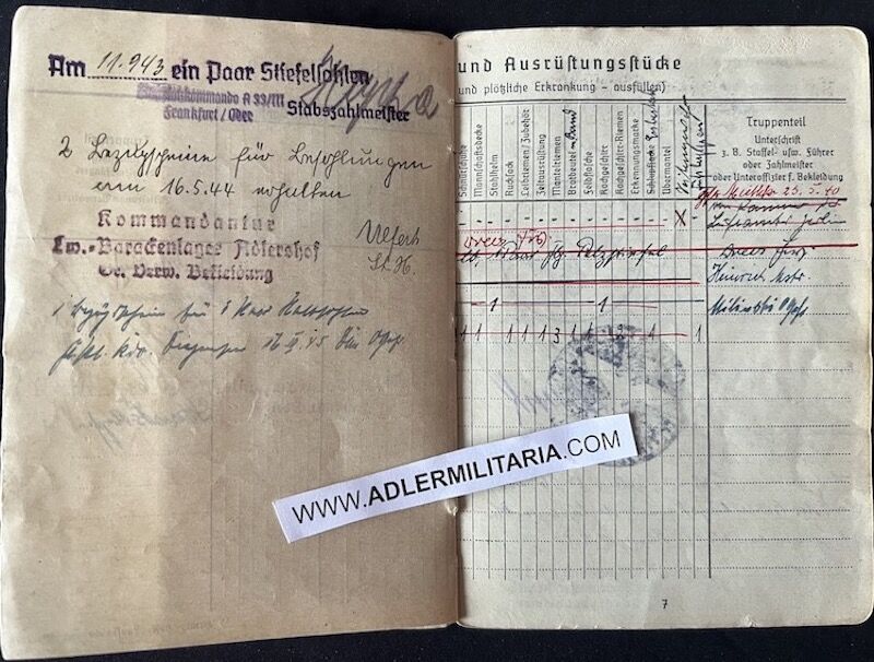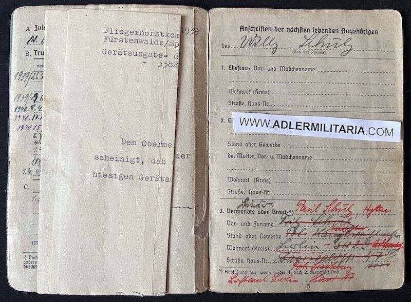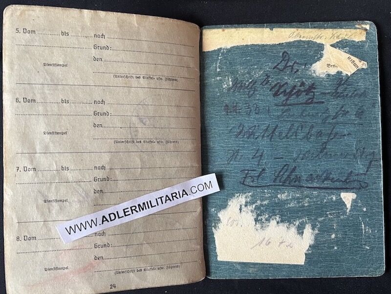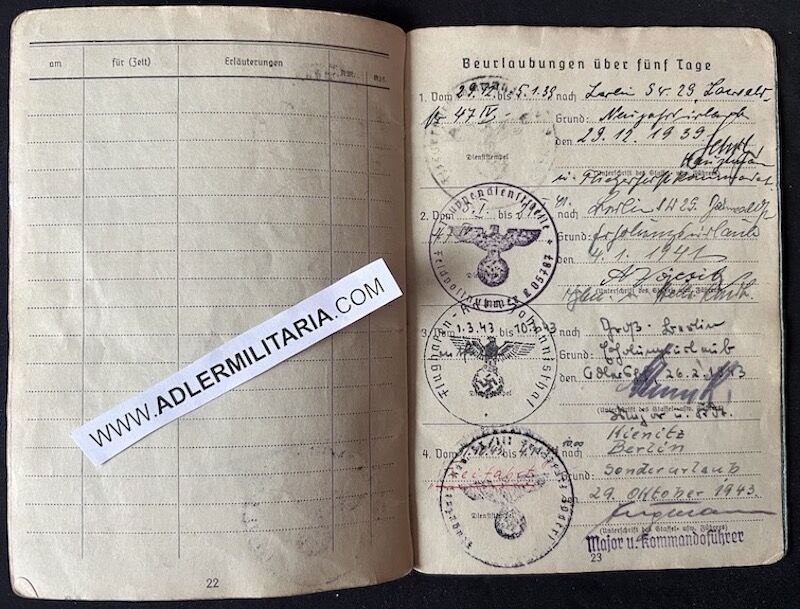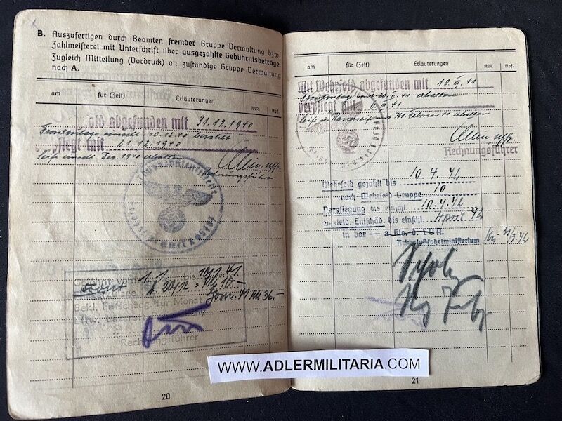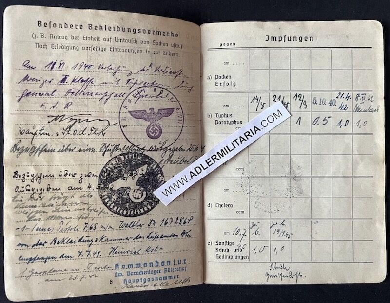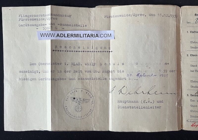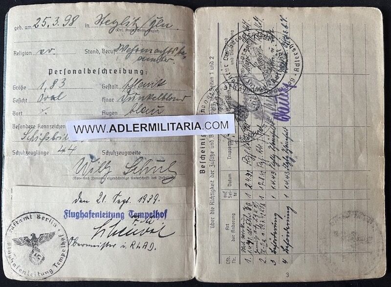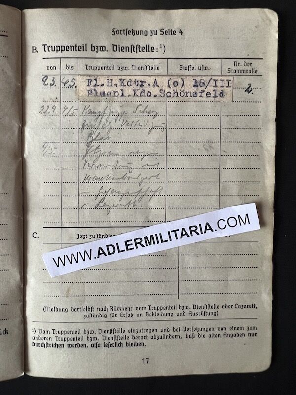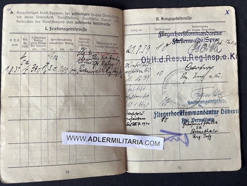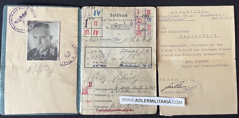 This is an exceptional Soldbuch, simply because he served in all the famous airports in Berlin as Flugleiter, meaning he was in some sort of Air Traffic control role.