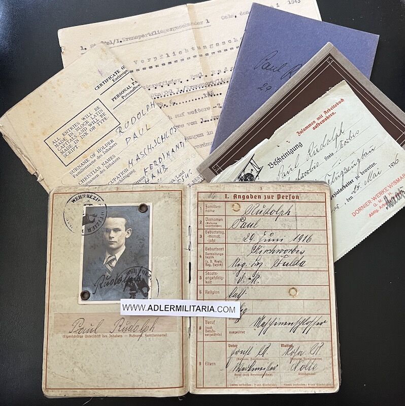 Luftwaffe Wehrpass – Feldwebel Paul Rudolph – Transportgeschwader 1 – Ju52 – Afrika – Stalingrad – Kreta x 7 Medals (Offer Accepted)