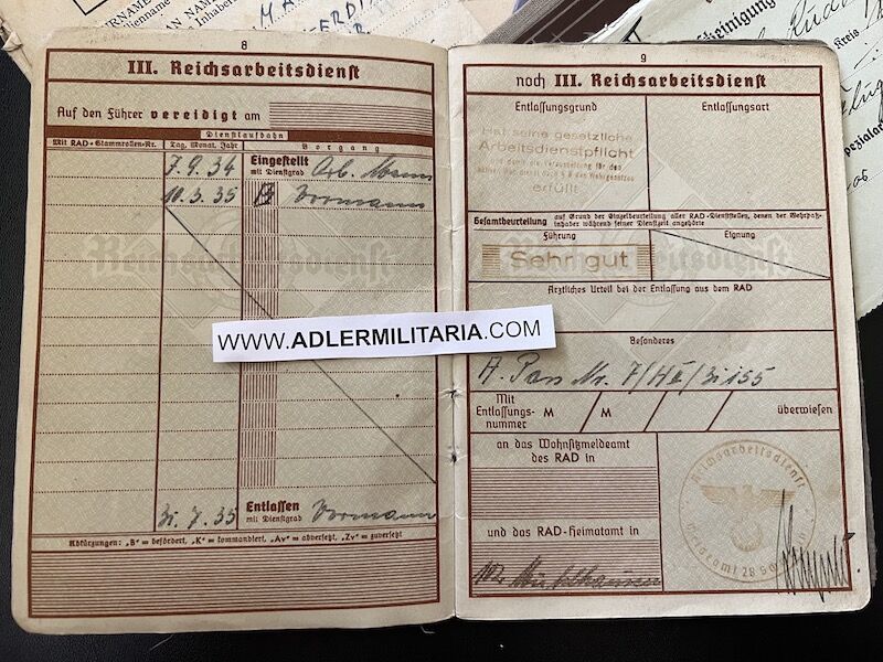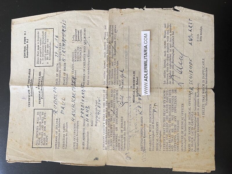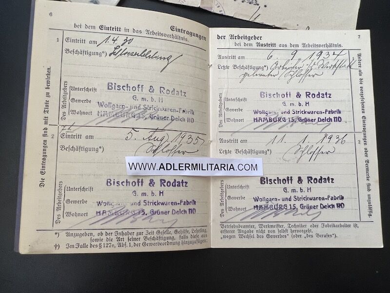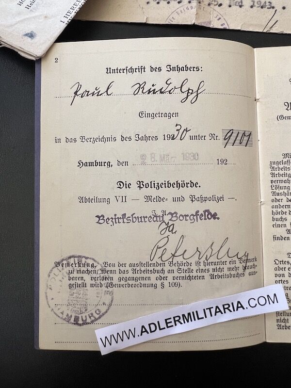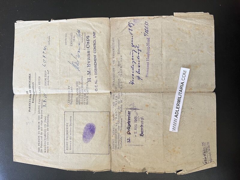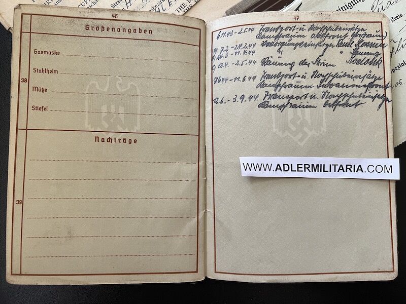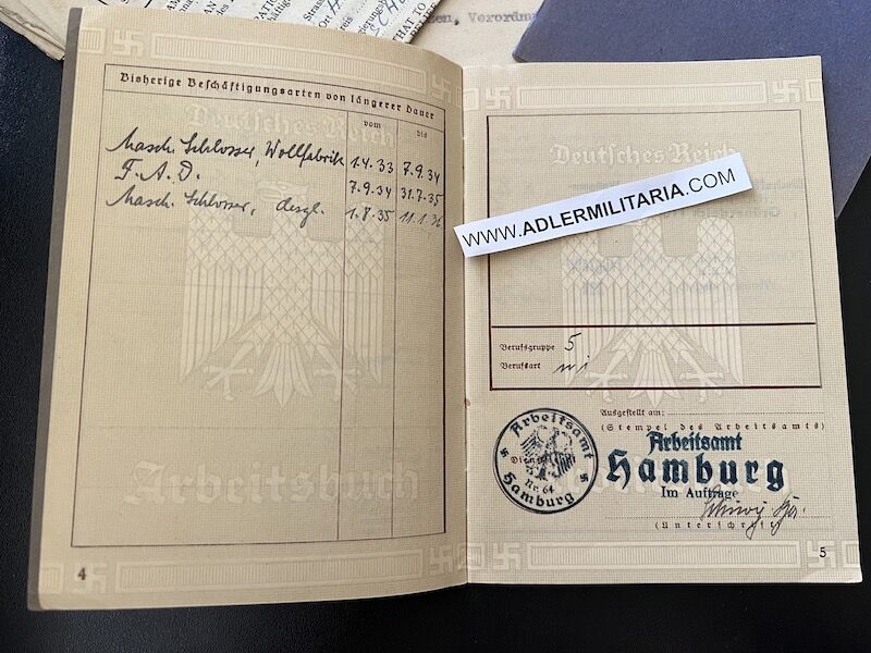 A super nice Wehrpass to a well decorated air crew member. Comes with his capture paperwork. Also his prewar work IDs, show he was working as a mechanic in building aircraft with Dornier. Please note the cover of the Wehrpass is in normal condition with Swastica.