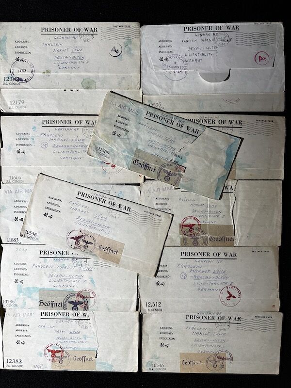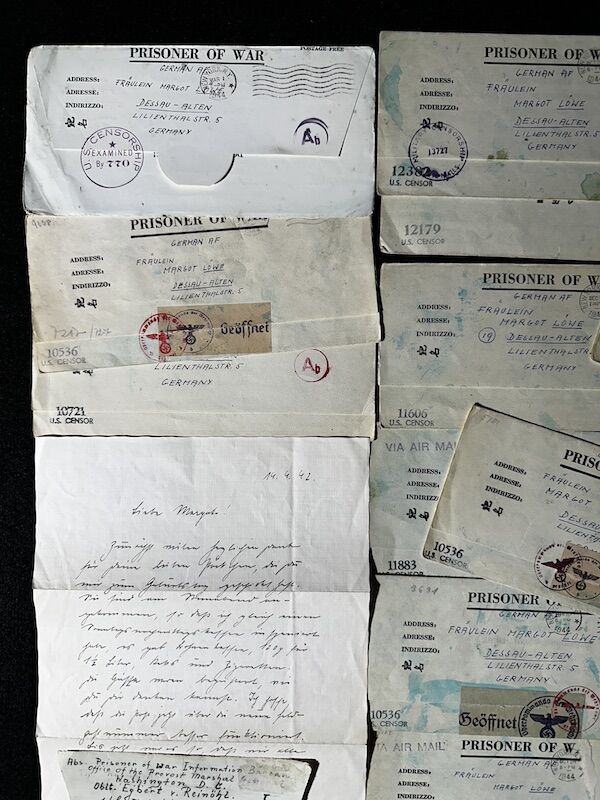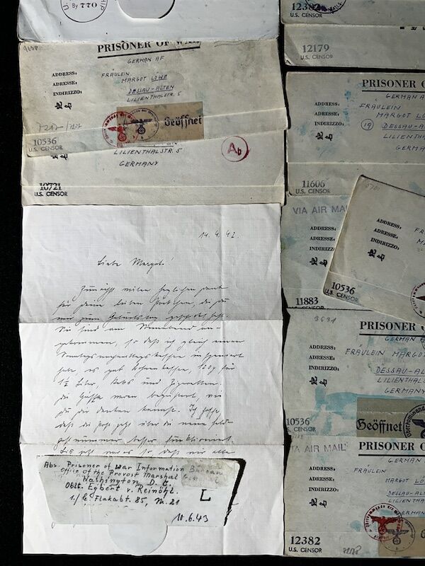 An interesting lot of POW Mail from Oblt Egbert von Reinöhl. He was captured in North Africa in mid 1943, and was moved to various camps in the USA.