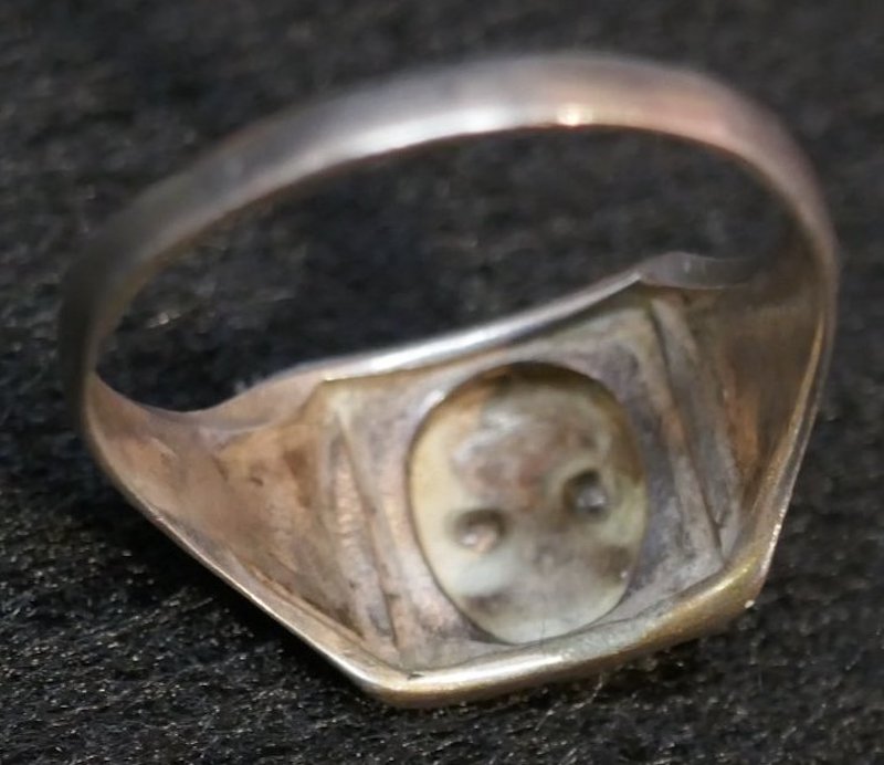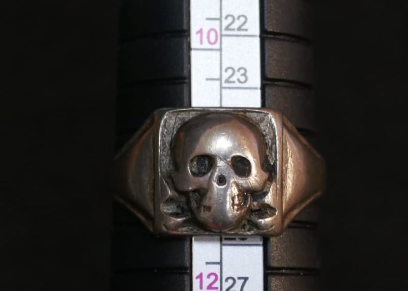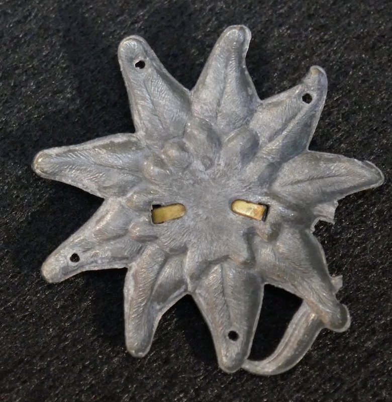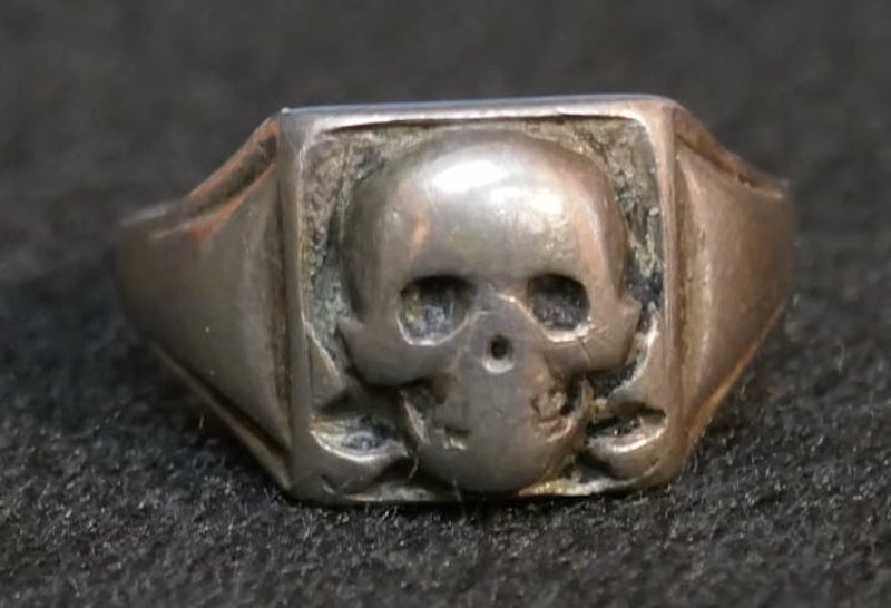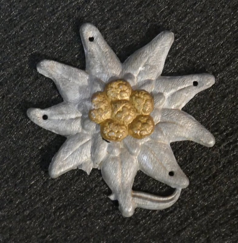 The grouping was acquired with other items belonging to Huy-Prech – A Totenkopf Ring (Deaths Head Ring – seems to be a canteen style ring). A Black Wounds Badge and a Drivers Badge in Bronze as well as an Edelweiss. Lastly a really nice Totenkopf RZM M1/52 Visor Cap Skull still with plenty of finish but missing one prong!
