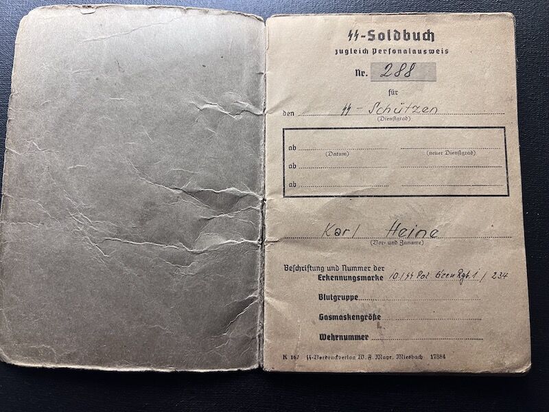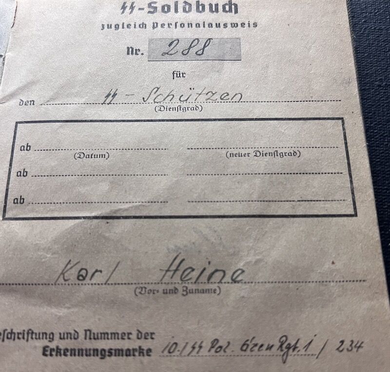 Original Waffen SS Soldbuch – SS Schützen Heine – SS Polizei Grenadier Regiment 1 – Romanian Volksdeutsche – Riga 1944 – Rare!