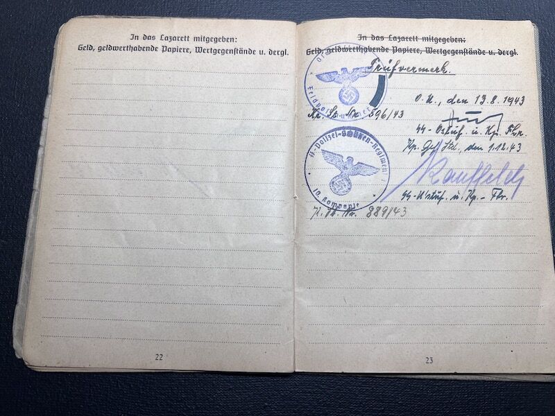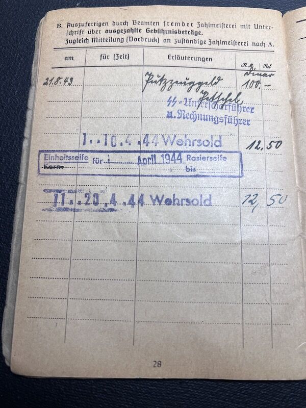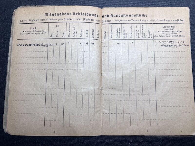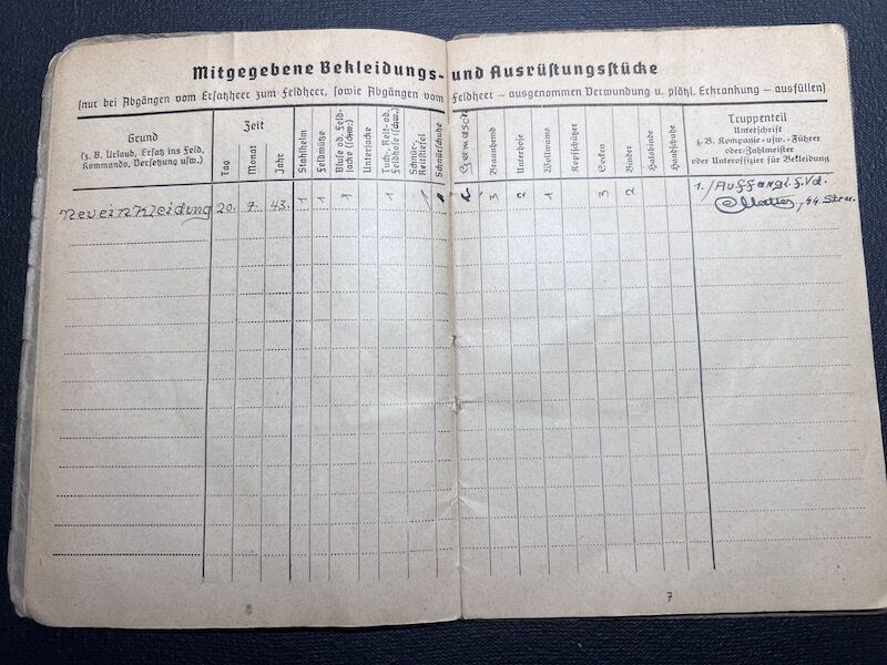 Interestingly, the unit was not filled out with the new designation although the entries in the Soldbuch go up to April 1944.