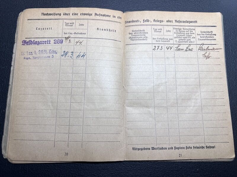 It seems that in early 1944, he was sick or wounded, arriving in Riga, Main Hospital Nr 1. (building still standing today!)