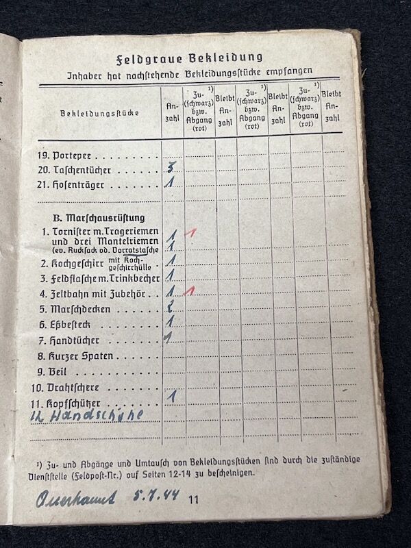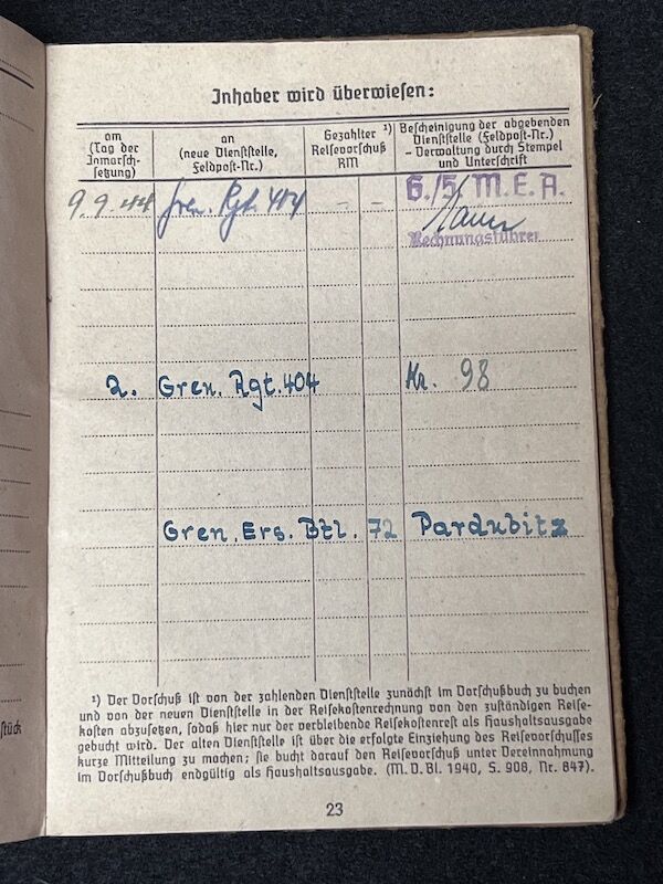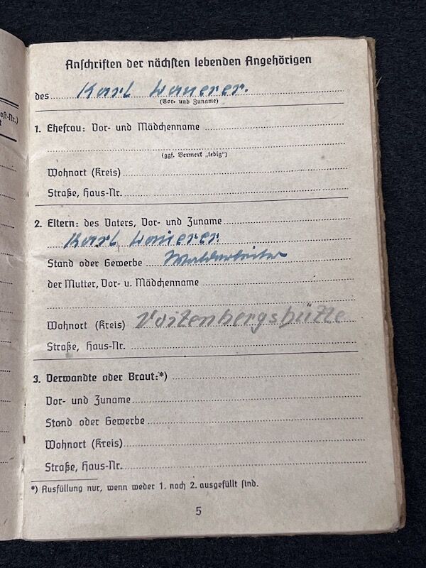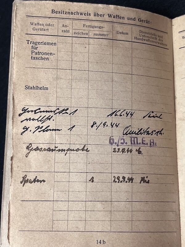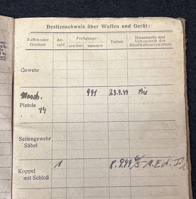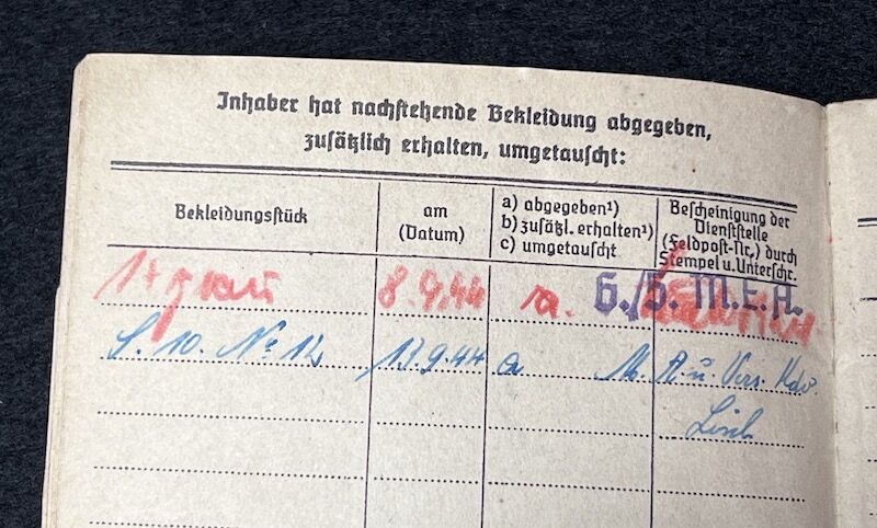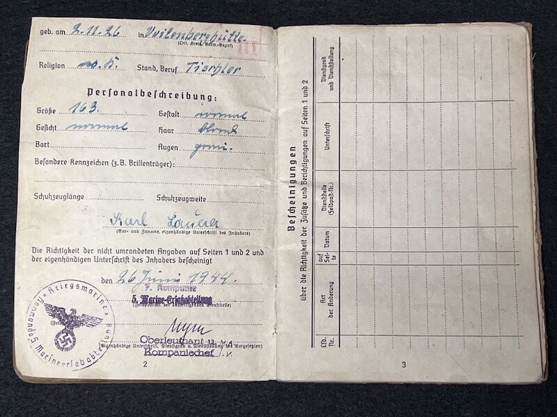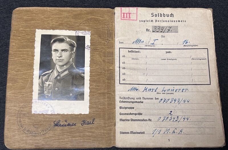 Original WWII German Kriegsmarine/Wehrmacht Soldbuch – Karl Lauerer – Grenadier Regiment 404 – 246 VGD – MP44 – Battle of Aachen