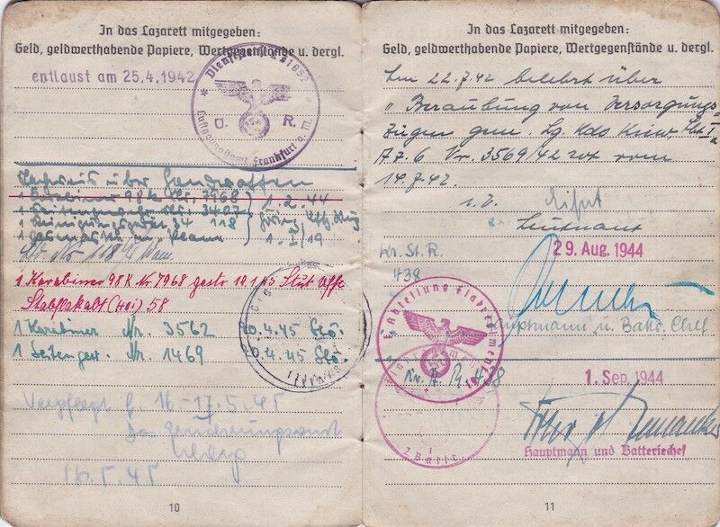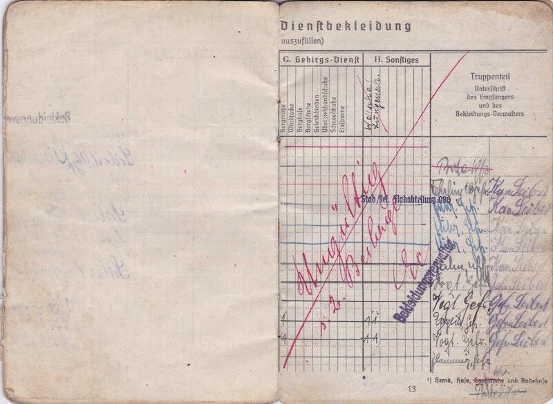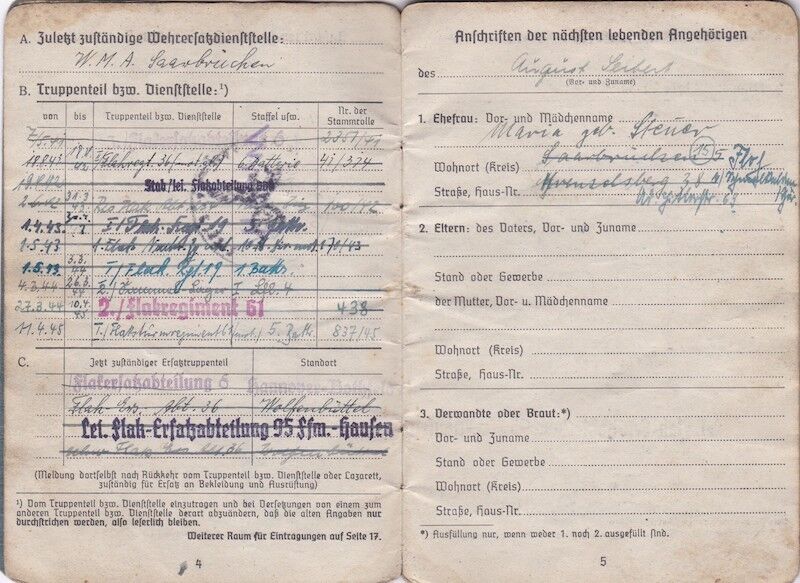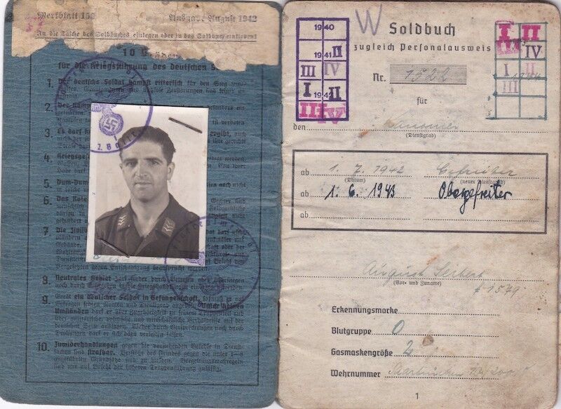 Original WWII German Luftwaffe Soldbuch – Obergefreiter August Seibert – Flak Regiment 61 (mot) – Eastern Front Medal – Black Wounds Badge