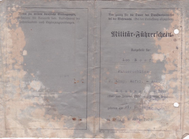 Original WWII German Militär-Führerschein – Panzerschütze Leo Neef – Aufklärungs Abteilung 3 – 21st Panzer Division – KIA Normandy Beuvrigny 1944 Marigny