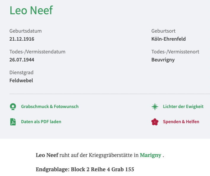 In 1944, he was a Feldwebel and was killed in August 1944 in Beuvrigny.
