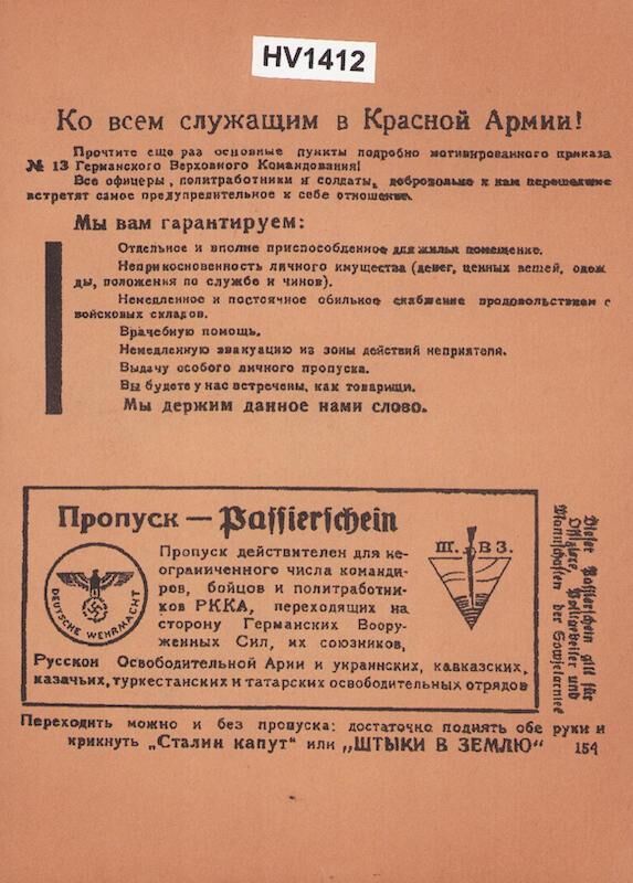German WWII propaganda leaflet aimed at Soviet Red Army soldiers, trying to persuade them to surrender and switch sides. It combines strong antisemitic imagery with practical “instructions” for defection.