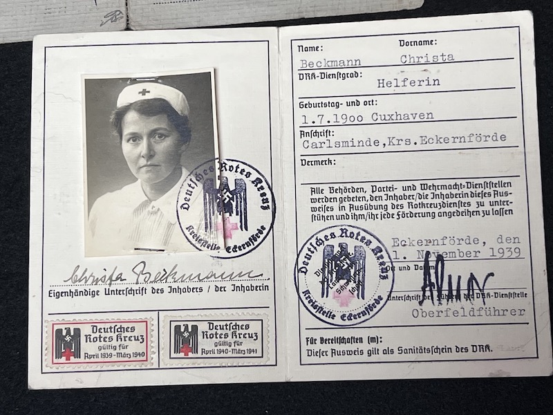 Original WWII German Red Cross Nurse Identification Papers Grouping