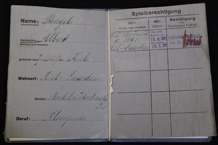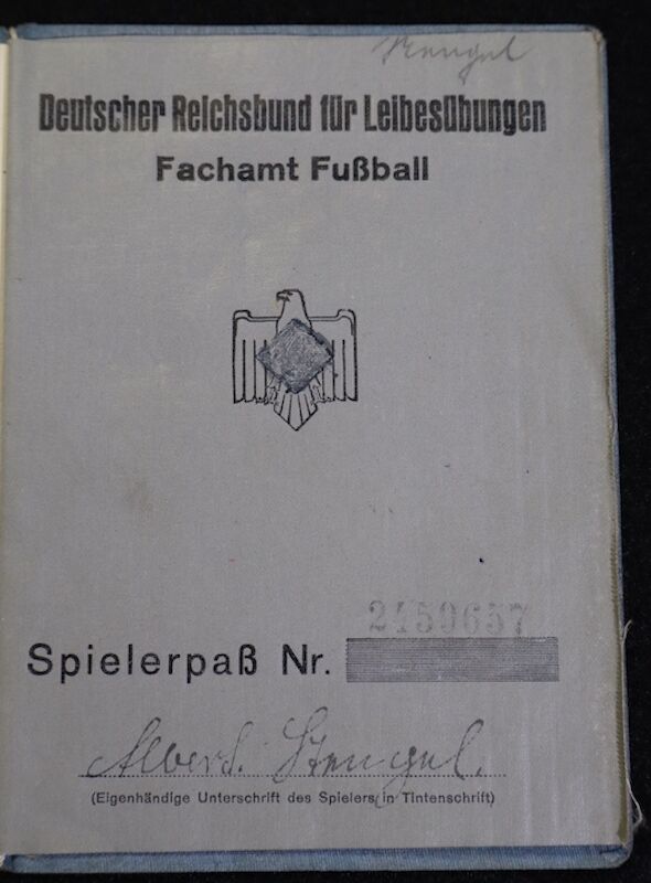 Original WWII German Sports Association Membership Pass – Footballer Albert Stengel – Borussia Dortmund 1937 – Rare!