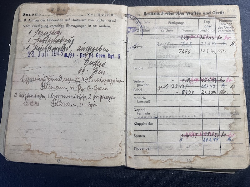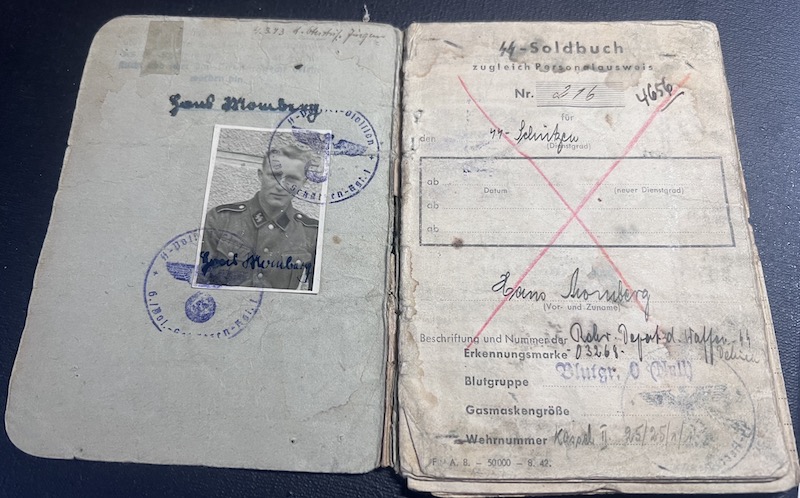 Original WWII German Waffen SS Soldbuch – SS Schütze Han Homberg – SS Sniper MIA / KIA – Gesichtsmaske – SS Panzer Grenadier Regiment 7 (Reserved)