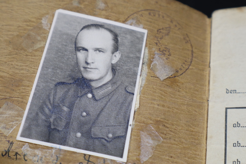 Not sure if that is the original photo to the Soldbuch, even though it can be seen there was a stamp over the photo too. Hence the Price.
