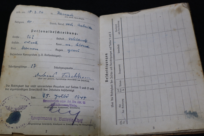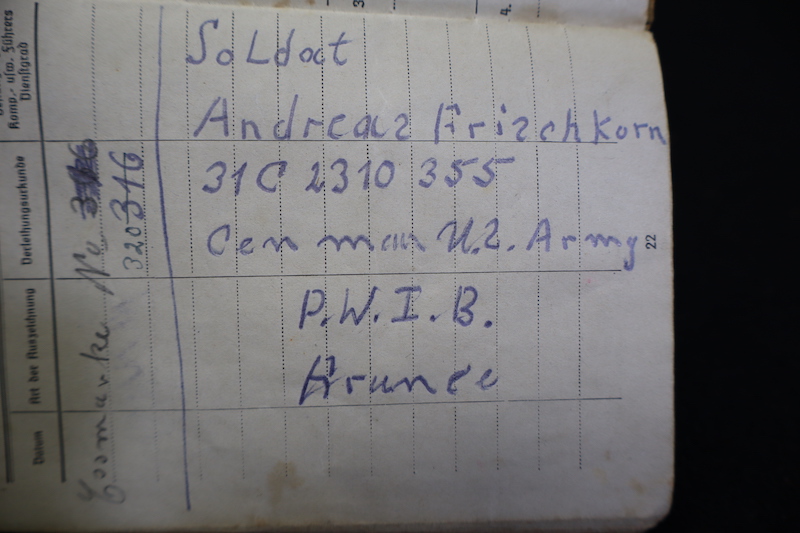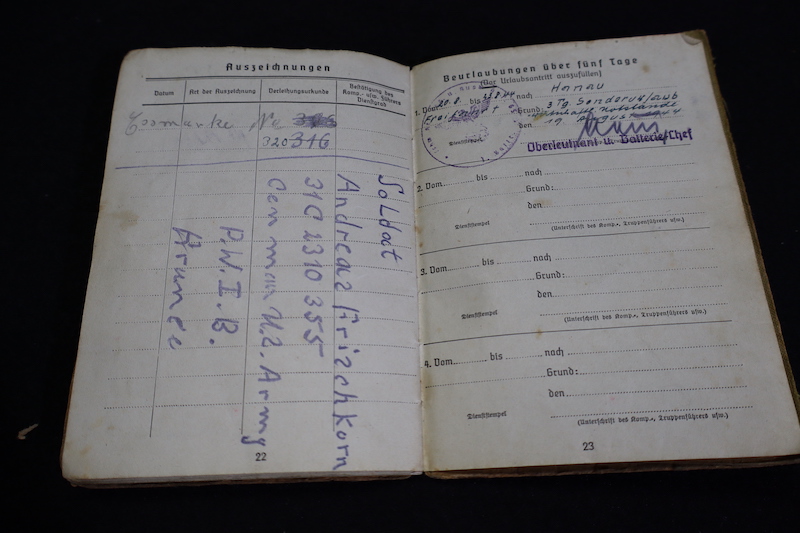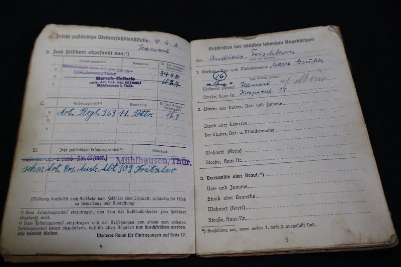 Original WWII German Wehrmacht Soldbuch – Andreas Frischkorn – Artillerie Regiment 369 (kroatisch) –