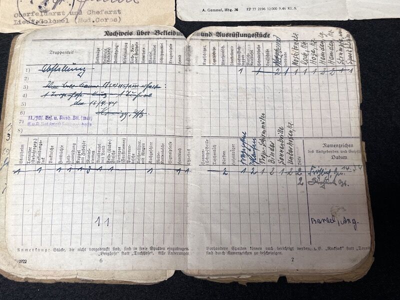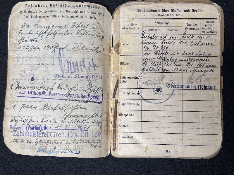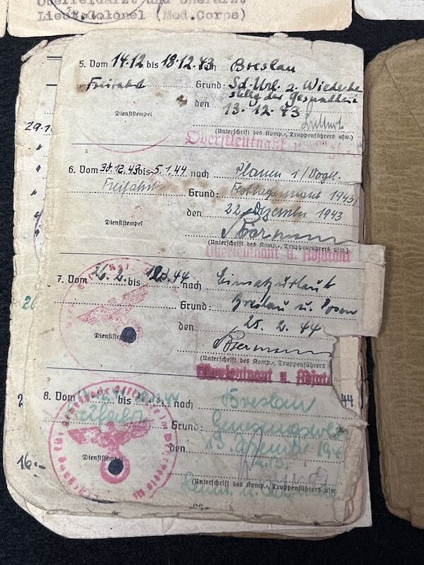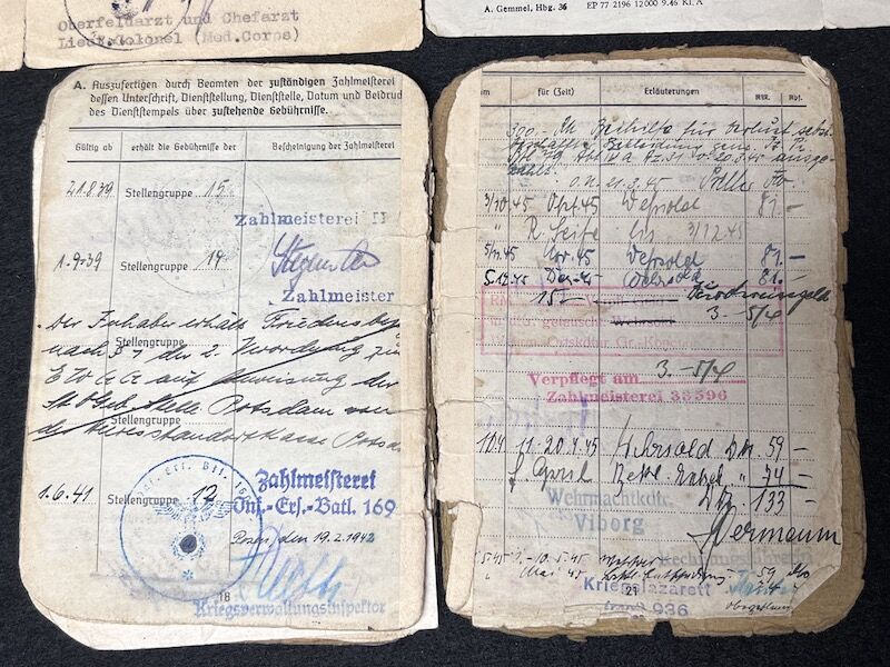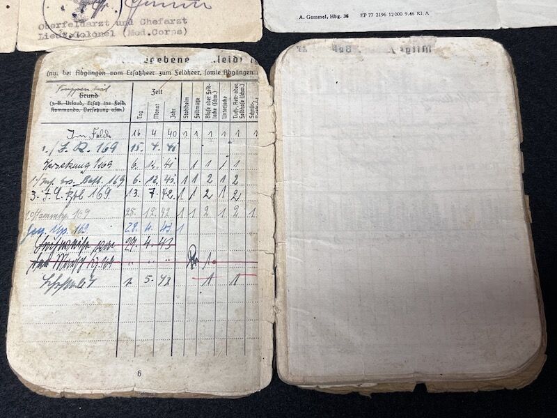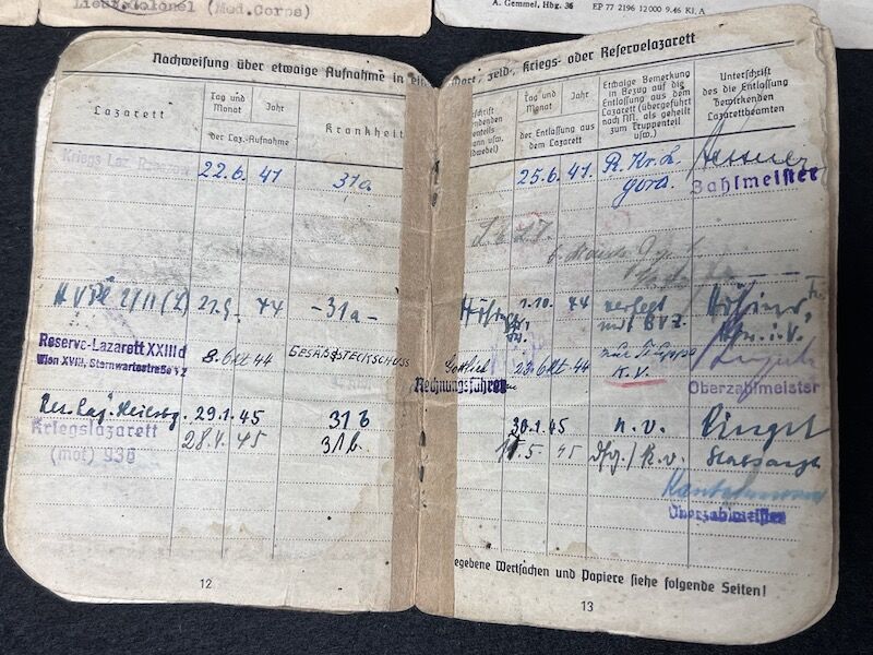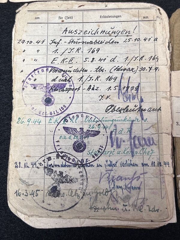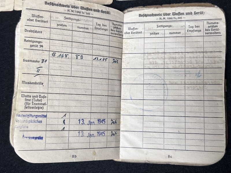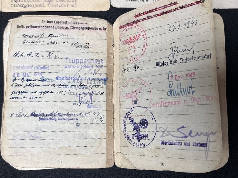 Original WWII German Wehrmacht Soldbuch – Oberleutnant Lothar Mosler – Iron Cross First Class – Panzer Pionier Batl 1233 – 233 Panzer Division – Wounded in Denmark 1945!!