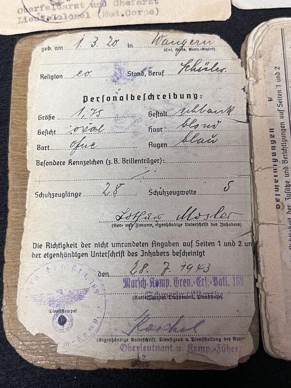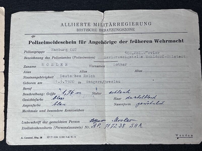 Mosler was from Wangern, Breslau. Born in 1920 he was enlisted in the German Army in July 1943.