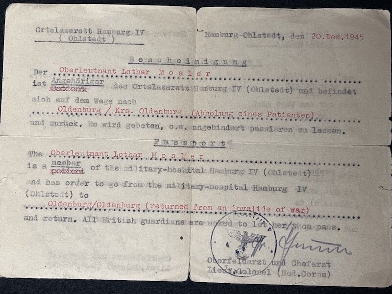 In December 1945, he was working in the Medical Hospital of the Wehrmacht under British watch in Hamburg.