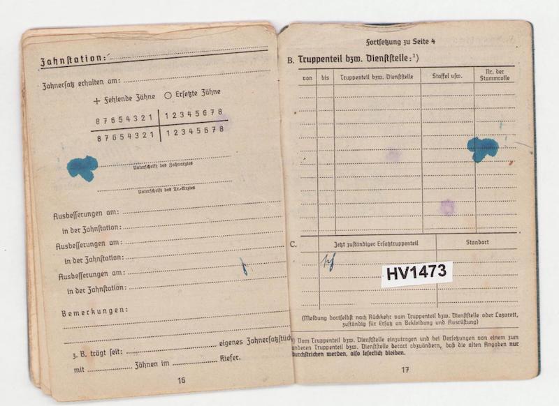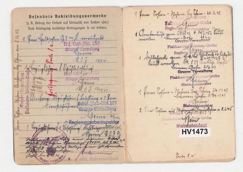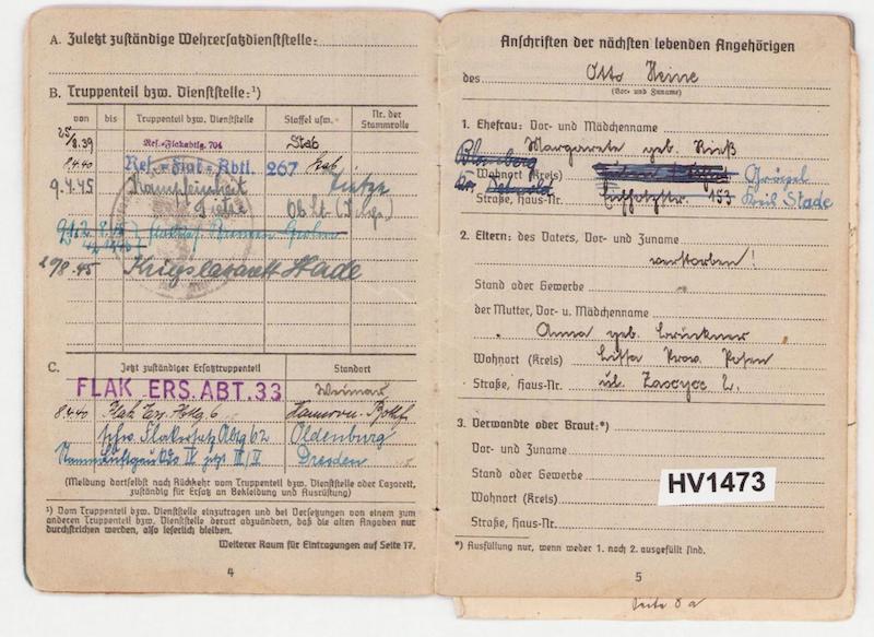Original WWII Luftwaffe Soldbuch – Stabsintendant Otto Heine – Truppensonderdienst (TSD) – Kampfeinheit Tietze April 1945
