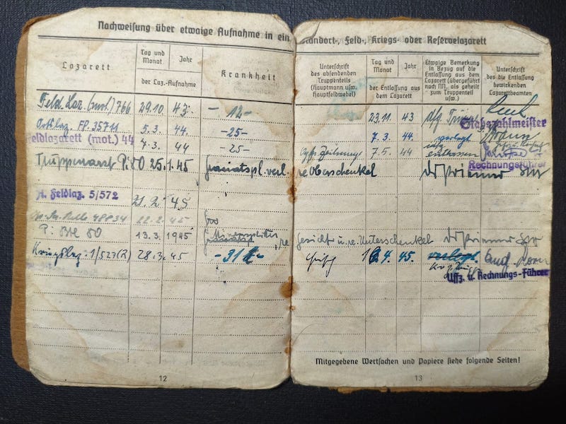 Glanbauf stepped on a mine in February of 1945, damaging the right side of his face and his right leg. For which he was given the Wounds Badge in Black. He was found fit for service again in April 1945, but what happened to him after that I was unable to find anything out.