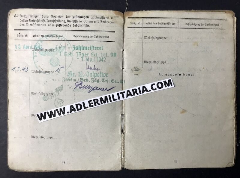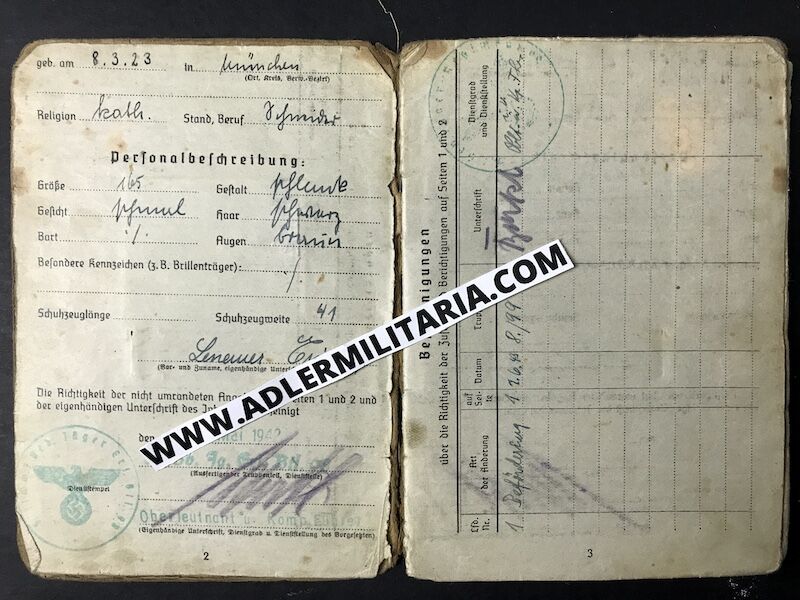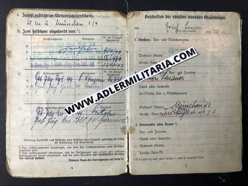 Soldbuch – Gefreiter Lenauer – GJR 99 & Hoch Gebirgsjäger Batl 201 – ‘Operation Habicht & Battle Bloody Hill’ (Sold)