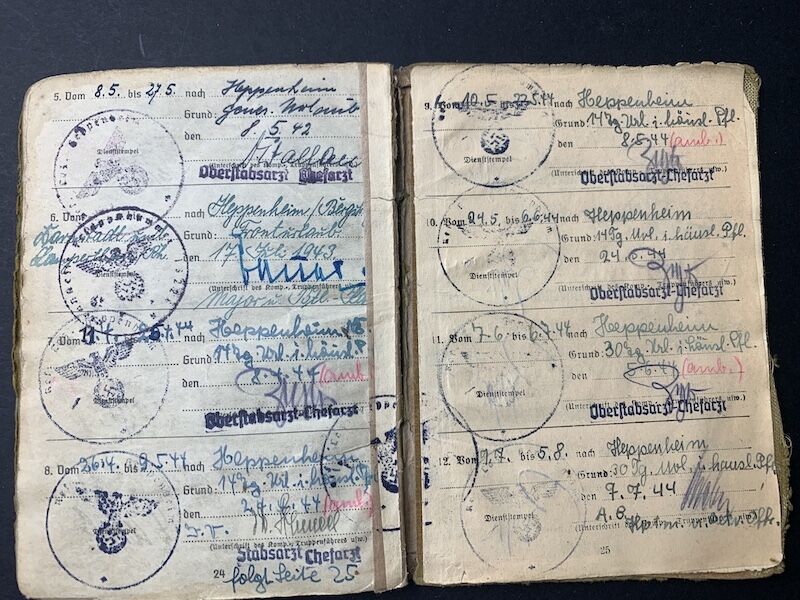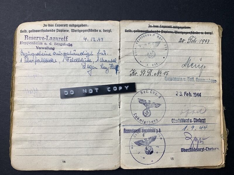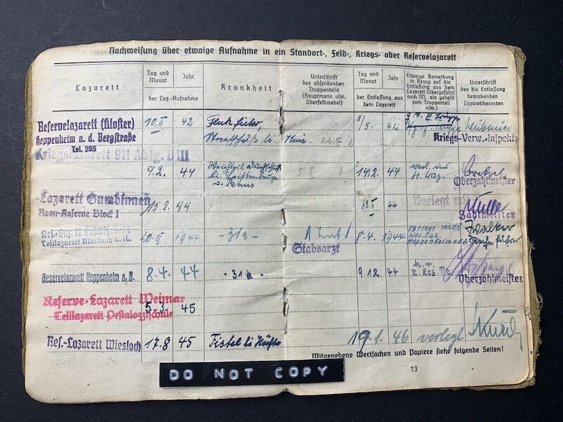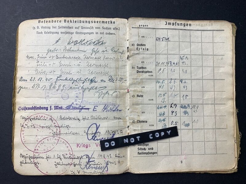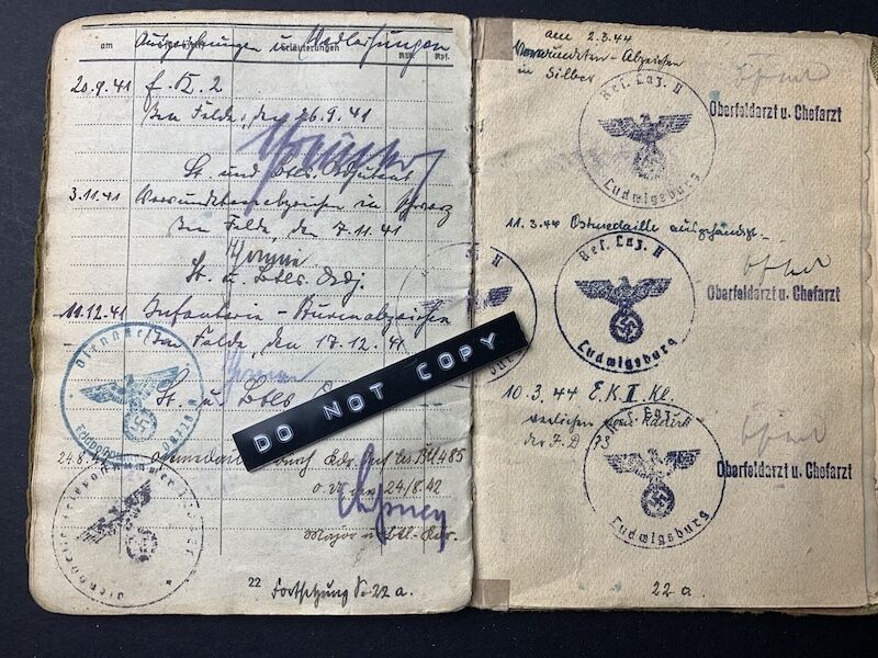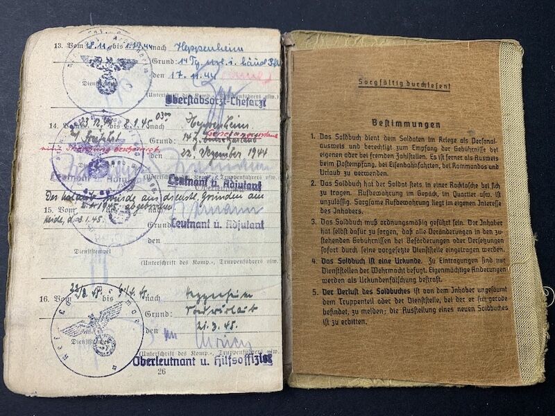 This Soldbuch saw the full war from start to finish. Werner was a combat decorated Officer who led a MG company, a desirable Soldbuch to say the least.Invasion of France and Belgium, to the Battle for Moscow, later training young recruits in Belarus, to the early 1944 retreats of Army Group North. Twice wounded, and decorated with both classes of the Iron Cross.