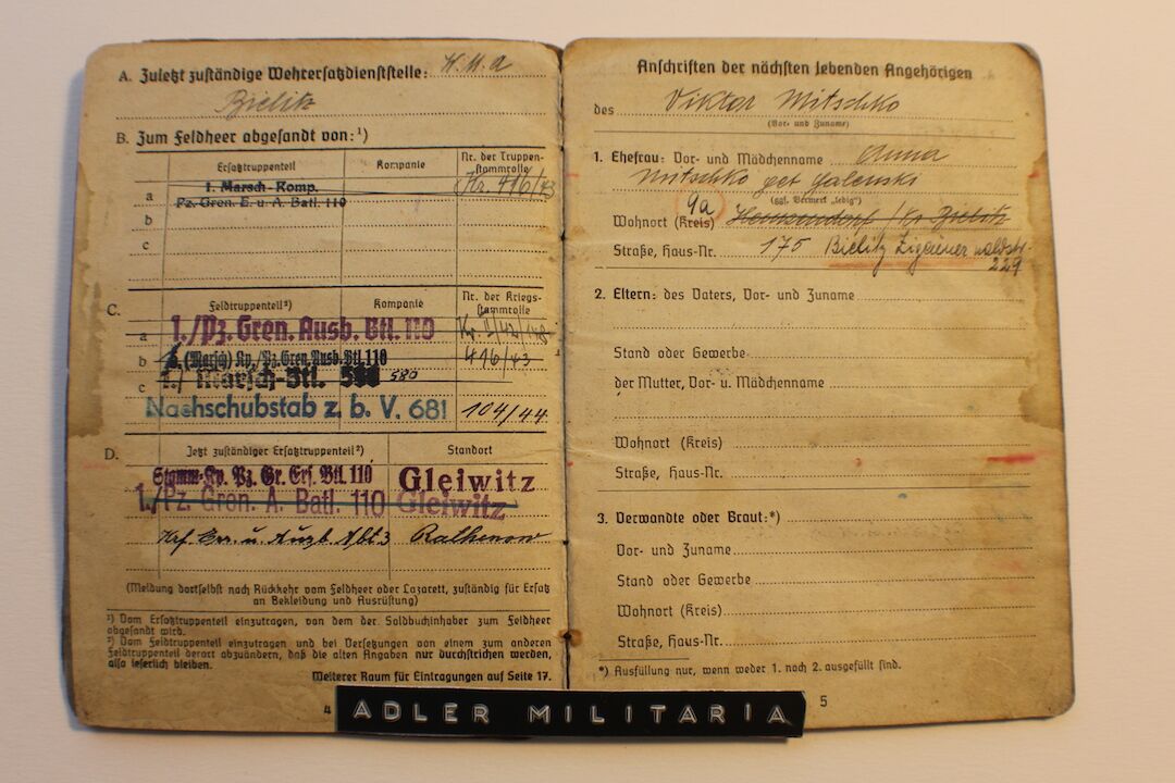 Soldbuch – Mitschko – TROPICAL UNIFORM! -Panzer Grenadier – Italy! 1944!