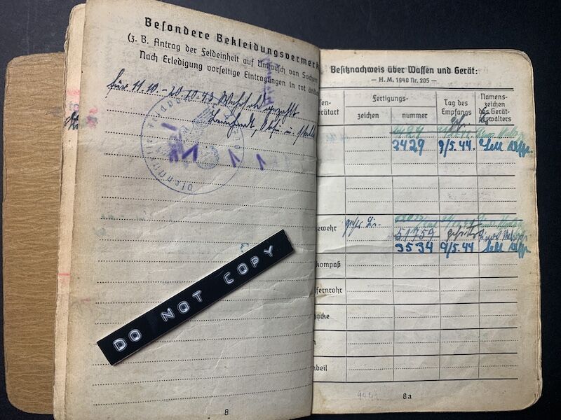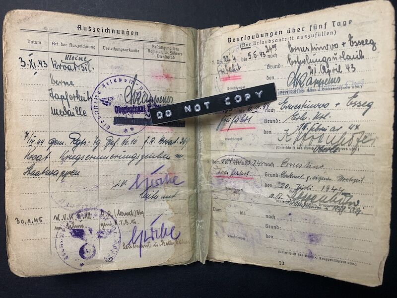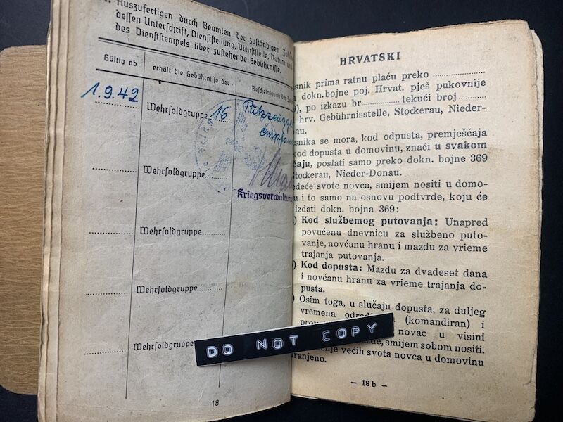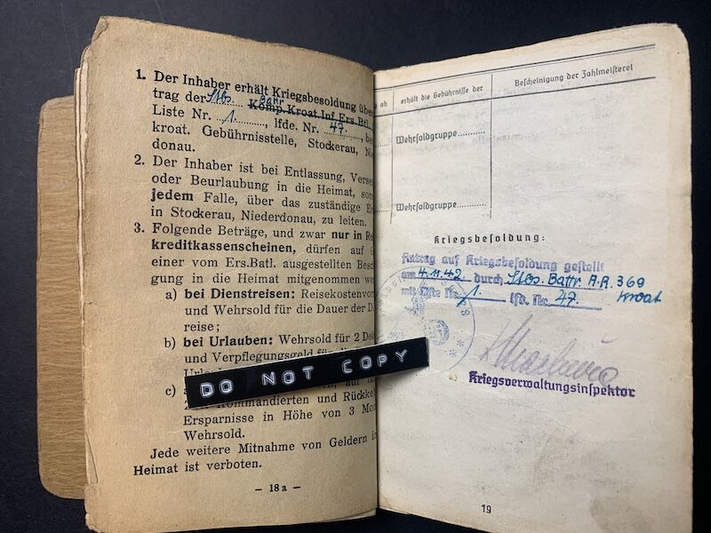 The Soldbuch also contains a Croatian extra page added, of which I have not managed to find another!