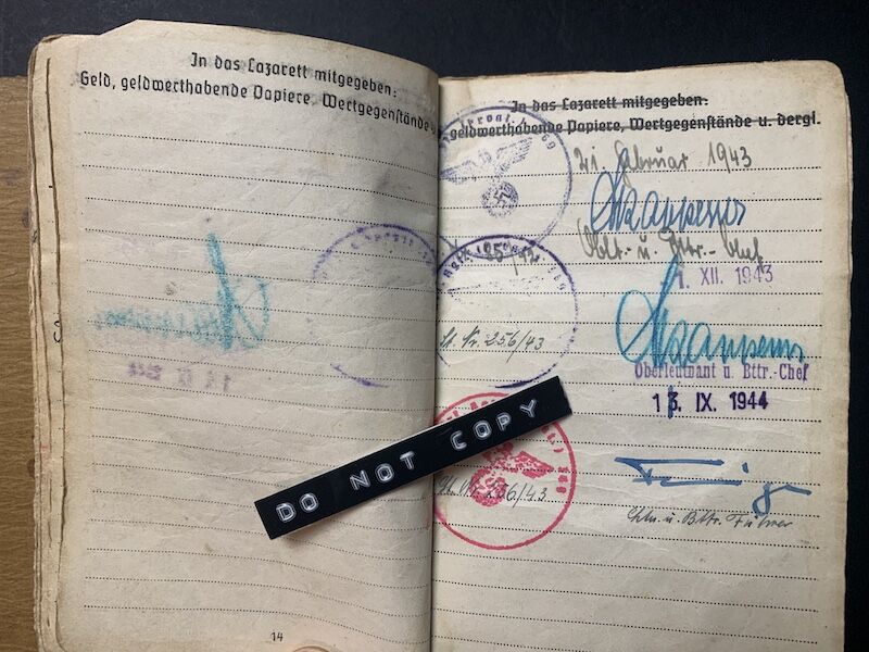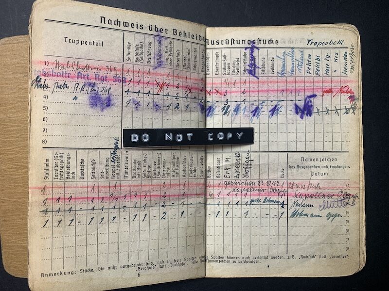 Interestingly the complete Soldbuch states that Mutter is serving with the Stabs Batterie although on further inspection it becomes clear the majority of the signatures inside the are from the 3rd Batterie, I Abteilung Commander: Oberleutnant Guske.
