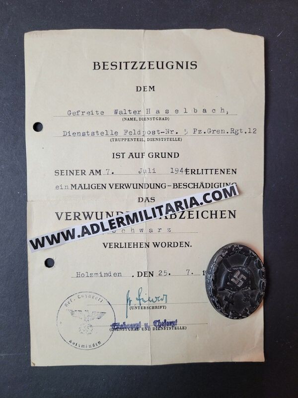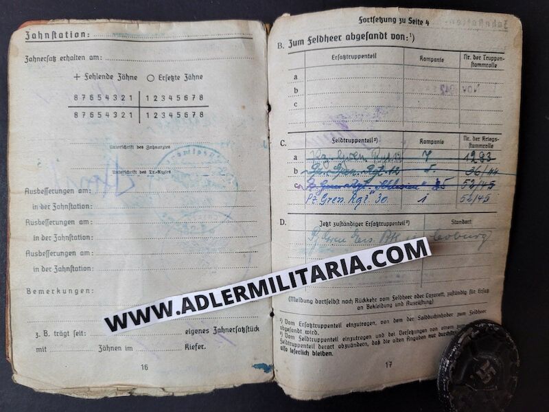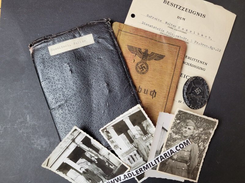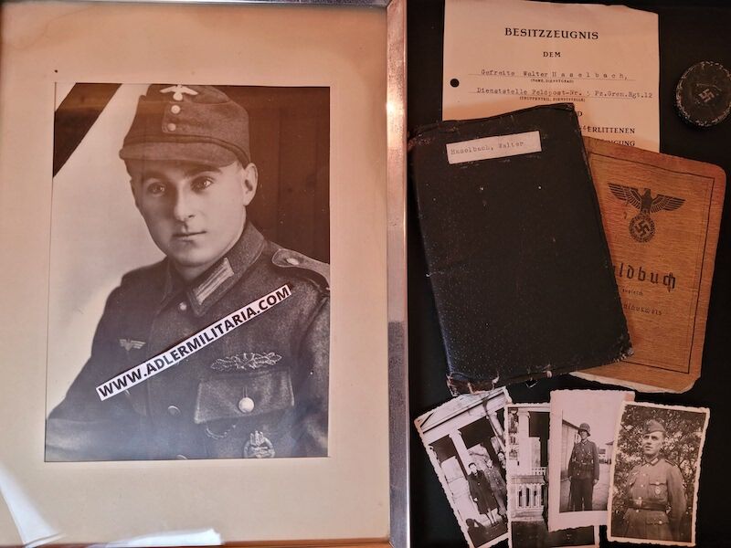 Soldbuch Set – Gefreiter Haselbach – Panzer Grenadier Regiment 30 (18 PzGren Div) – Stg44 – KIA BERLIN 1945 – CCC (Sold)