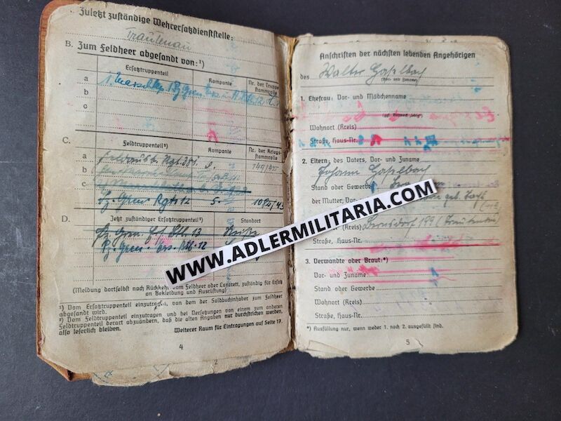 Killed in action in the Berlin, this battle hardened Soldier seen heavy action in the Eastern Front, and was a witness of the struggle of the last battles on the Oder Front. Finding Soldbücher to KIA German Soldiers for the Battle of Berlin is nearly impossible they don’t come up very often. The majority that do come up are not combat veterans, but elderly or young soldiers. This example is extra ordinary. The large framed photo bearing the black ribbon