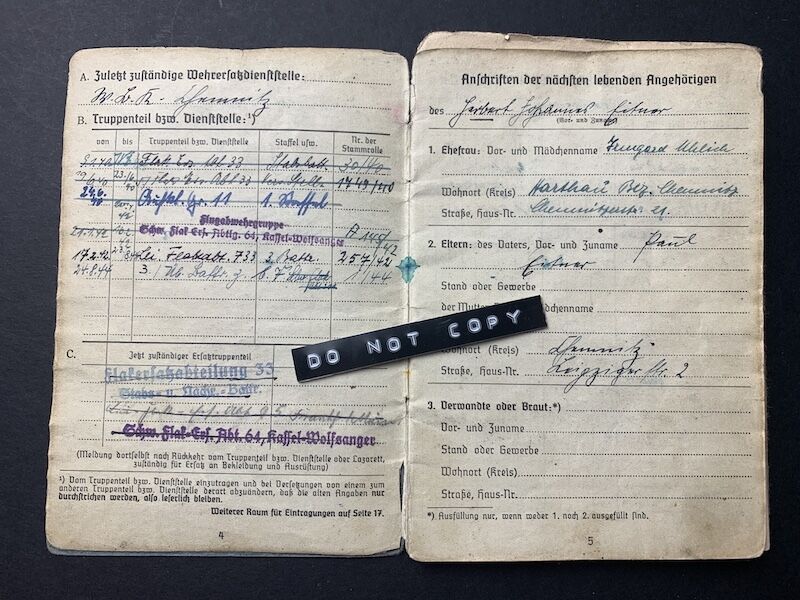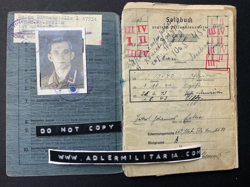 Luftwaffe Soldbuch to Unteroffizier Herbert Eidner