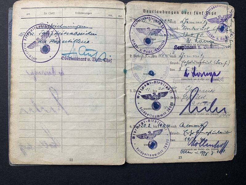 Soldbuch – Uffz Eitner – Wounded during ‘Battle of Berlin 1945’ – Soviet Capture/release Papers (Reserved)