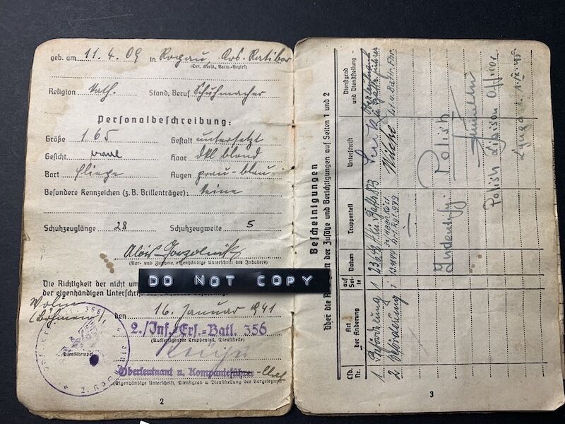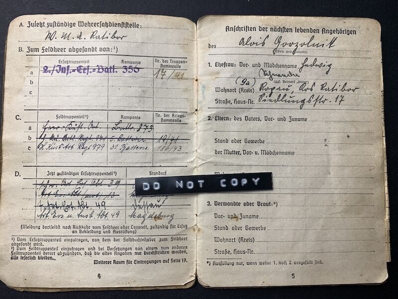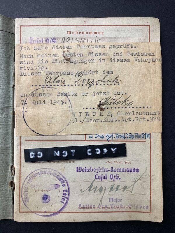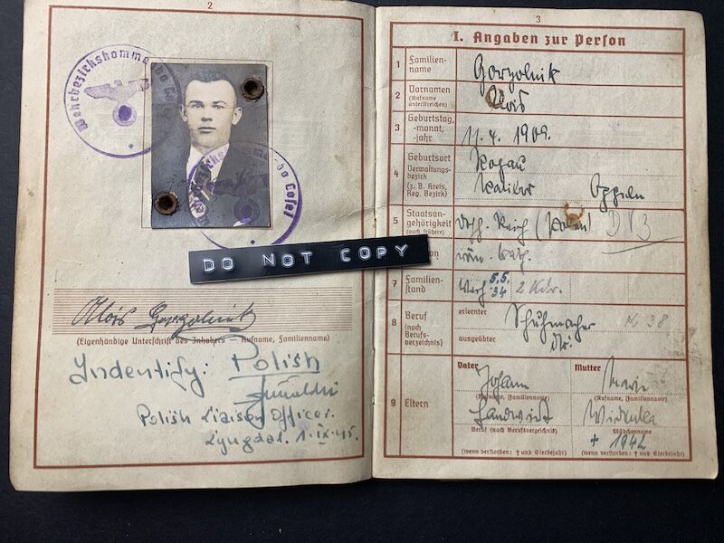 Soldbuch and Wehrpass set to Obergefreiter Alois Gorzolnik